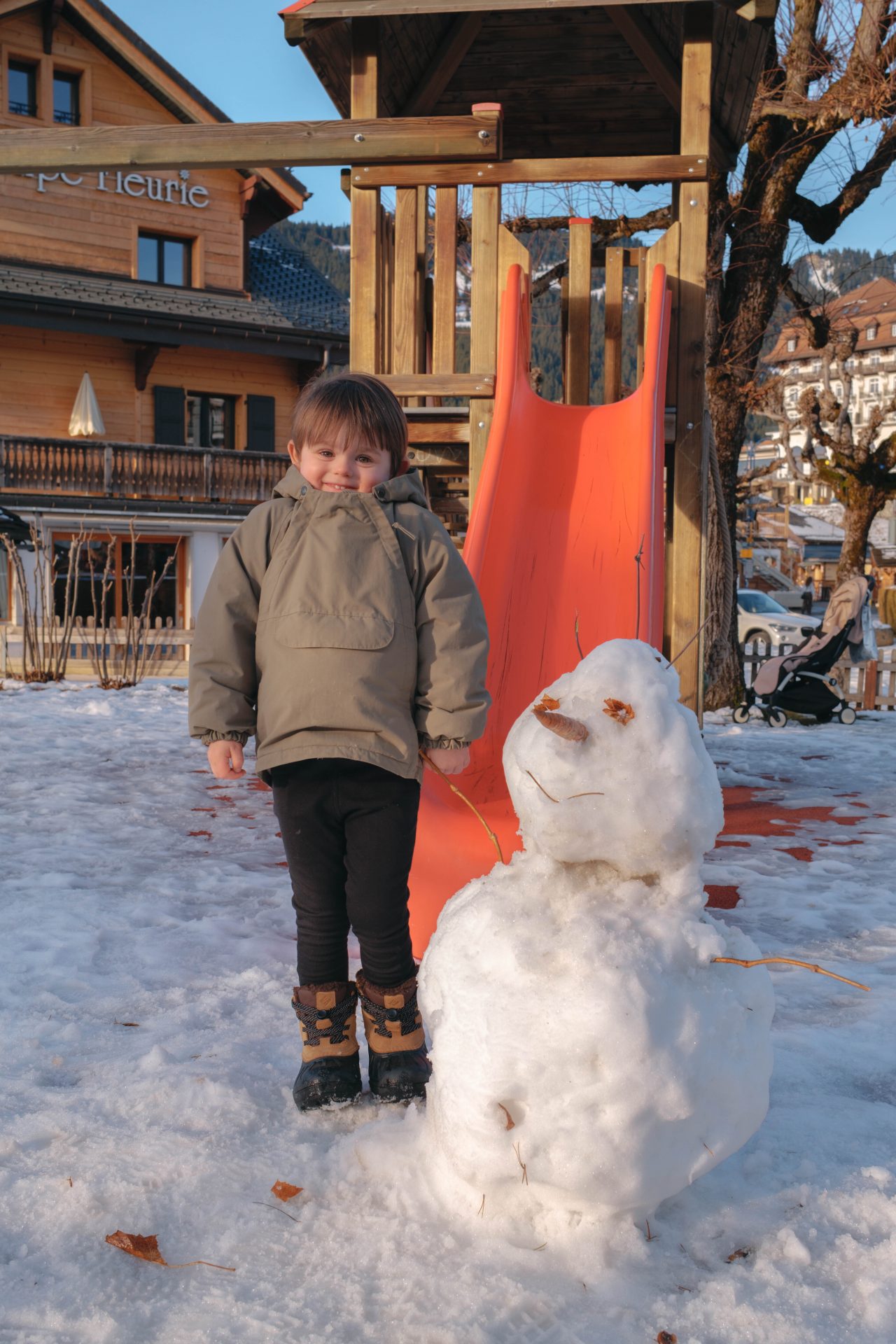 Pour cette première étape dans les Alpes Vaudoises, Villars nous a tout de suite donné ce qu’on était venus chercher : une vraie ambiance de station de montagne, vivante mais à taille humaine, avec ce charme suisse qu’on aime tant. Ce qu’on a apprécié, c’est ce mélange entre le côté “village où l’on se balade facilement” et l’accès hyper simple à la neige, aux activités, aux panoramas. On passe du centre à l’univers alpin en quelques minutes, et même sans skier, on ne s’ennuie jamais : il y a toujours une vue qui accroche l’œil, une terrasse qui donne envie de s’arrêter, un petit rythme doux qui fait du bien. Après notre précédente escapade en Suisse (ailleurs, quand j’étais enceinte), vivre cette montagne-là à trois, avec James qui a maintenant 3 ans, avait une saveur particulière : on a eu l’impression de revenir “en famille”, pour de vrai.