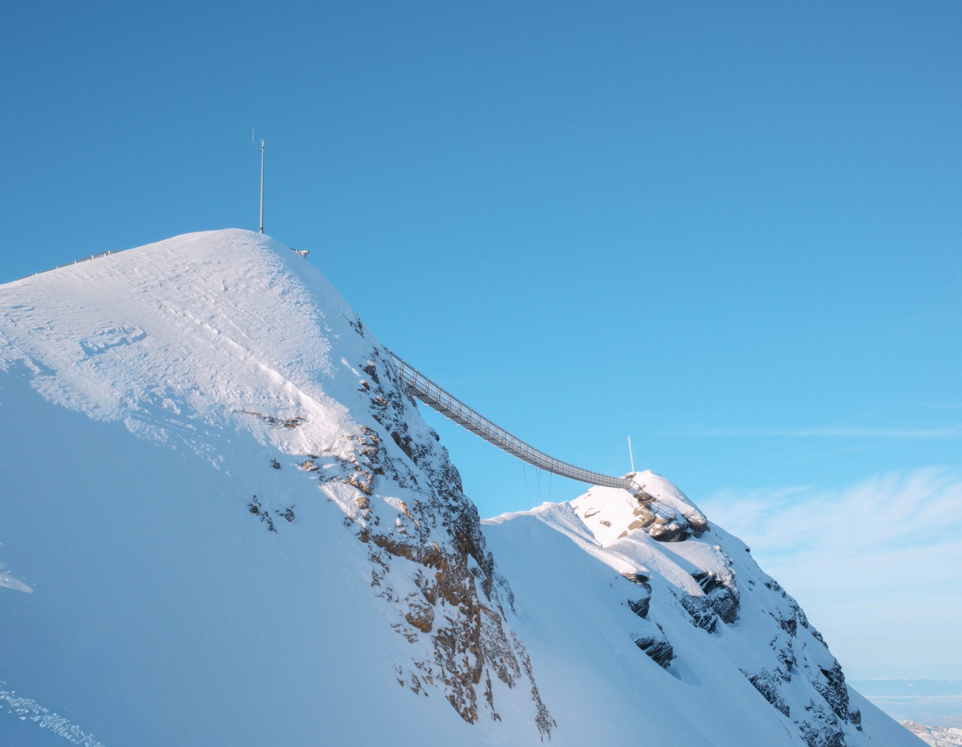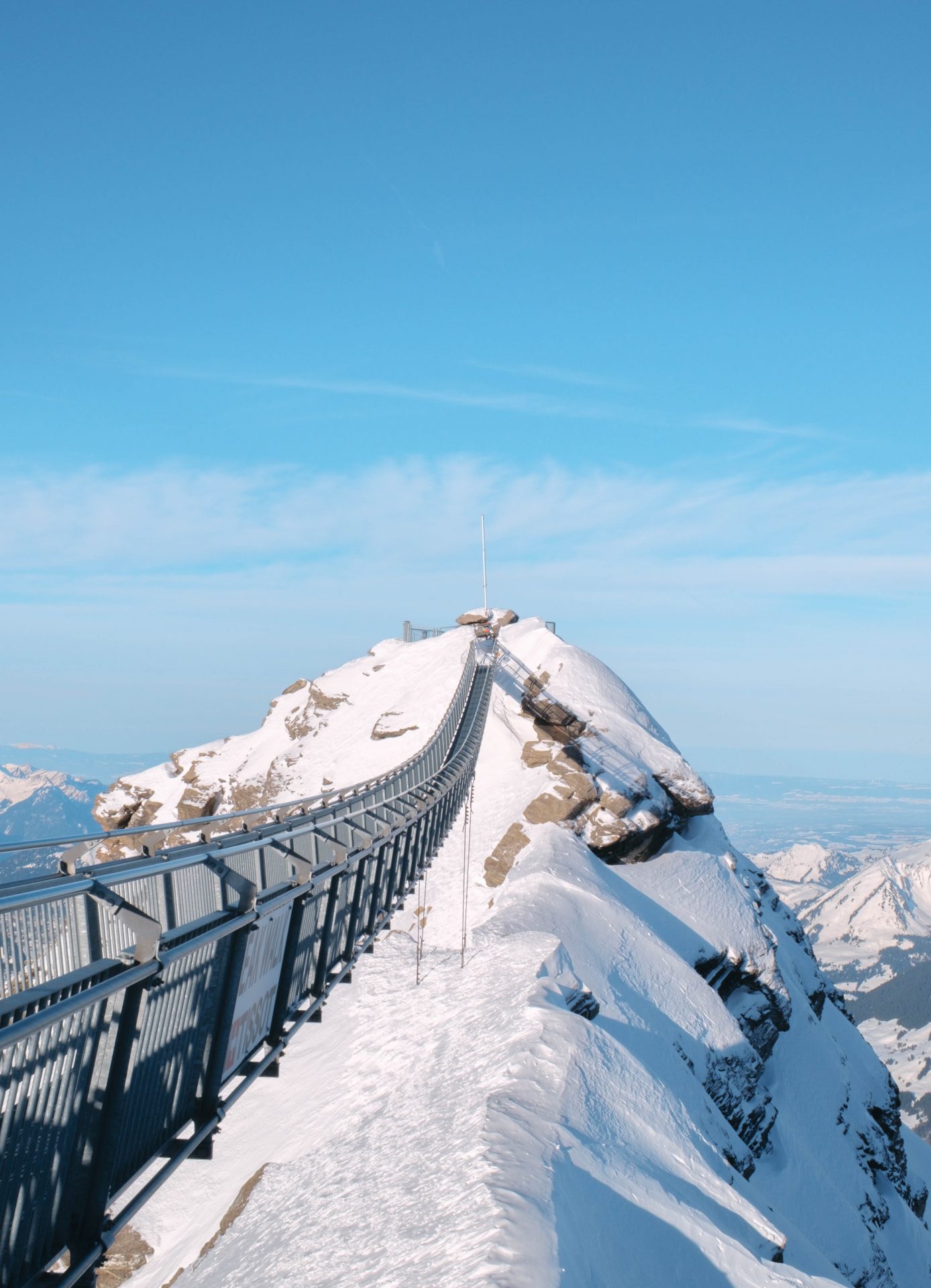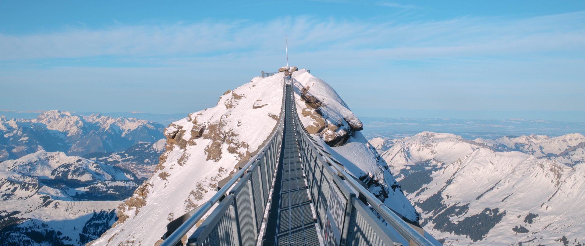 Impossible de séjourner aux Diablerets sans vivre l’expérience Glacier 3000, et pour nous, cela a été l’un des grands temps forts du voyage. Pour s’y rendre, il faut rejoindre le Col du Pillon, facilement accessible en bus depuis la station, puis emprunter deux téléphériques successifs qui mènent jusqu’à 3000 mètres d’altitude. La montée est déjà spectaculaire : plus on prend de l’altitude, plus les paysages deviennent minéraux, grandioses, presque irréels. Une fois là-haut, le contraste est saisissant. L’air est plus vif, la lumière plus intense, et le panorama à 360° totalement époustouflant. Notre première étape a été le Peak Walk, le pont suspendu qui relie deux sommets à 3000 mètres d’altitude. Marcher sur ce pont, avec le vide de chaque côté et les Alpes à perte de vue, est une expérience impressionnante mais accessible, même avec un enfant, à condition bien sûr de rester vigilant. Nous avons ensuite pris les télésièges jusqu’à Glacier Walk, un secteur particulièrement bien aménagé. C’est ici que James a pu profiter des descentes en luge, pendant que nous admirions les paysages. Tout est parfaitement sécurisé et pensé pour les familles, ce qui rend l’expérience très fluide et agréable. Pour le déjeuner, nous avons choisi de manger au restaurant d’altitude Le 3. Difficile de faire mieux comme cadre : une fondue dégustée face aux sommets enneigés, à 3000 mètres d’altitude, restera forcément un souvenir marquant. Côté budget, il faut compter un certain investissement pour les remontées, mais l’expérience en vaut clairement la peine, surtout si la météo est dégagée.