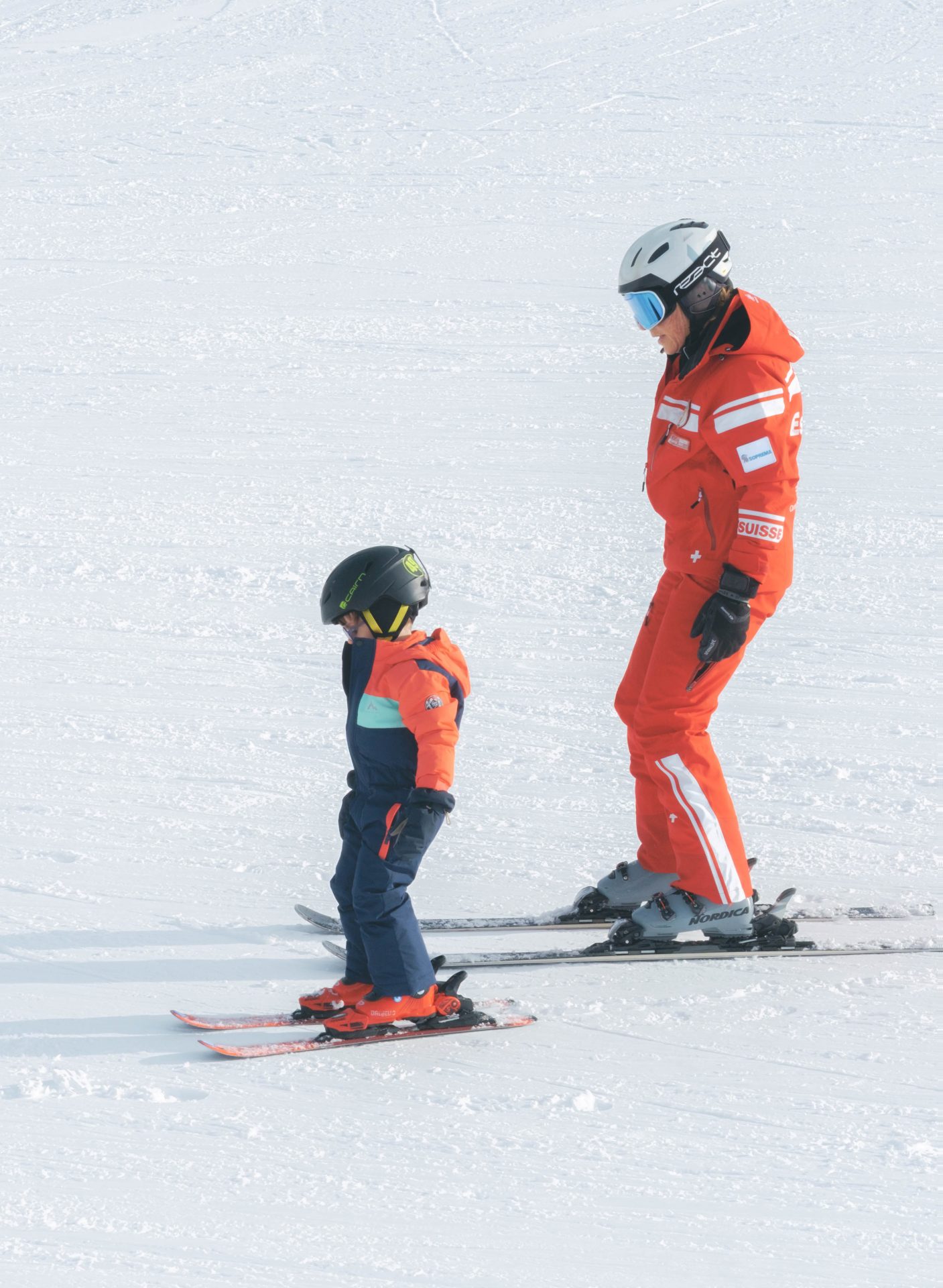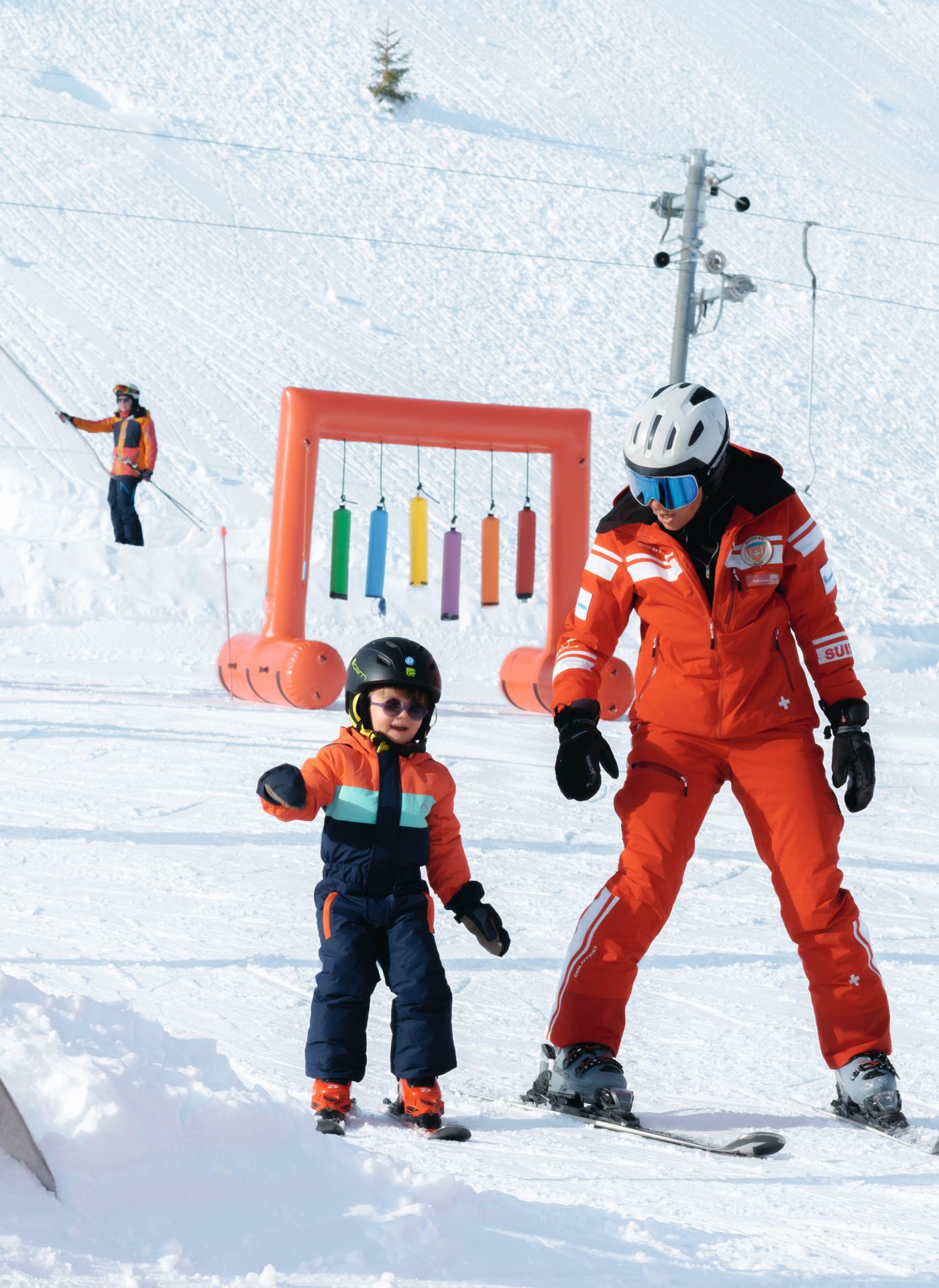 Dès l’arrivée sur l’espace dédié aux enfants, l’ambiance est chaleureuse et joyeuse. Tout est pensé pour eux : des pistes douces, sécurisées, un espace coloré, du matériel adapté, et surtout des moniteurs incroyablement pédagogues. James a été encadré par Fabienne, qui a su immédiatement créer un climat de confiance. Ici, pas de pression, pas d’objectif de performance : on apprend en jouant, on rit beaucoup, et on prend le temps. En seulement une heure, nous avons été bluffés par les progrès. Les bases ont été posées en douceur : équilibre, premières glissades, petits virages, le tout ponctué d’encouragements constants. Voir James évoluer sur ses skis avec le sourire, concentré mais détendu, a été un vrai moment de fierté pour nous.