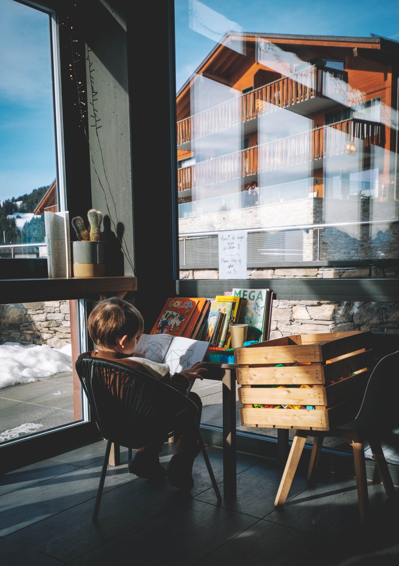 Autour des pistes de luge, l’aire de jeux est incroyablement riche et variée. Toboggans, structures à grimper, jeux d’équilibre, espaces pour courir dans la neige… Il y a de quoi occuper les enfants longtemps, sans jamais s’ennuyer. Le tout dans un environnement absolument sublime : des chalets alpins tout autour, les montagnes en toile de fond, une neige fraîche qui scintille sous un grand soleil d’hiver. L’ambiance est douce, familiale, joyeuse.