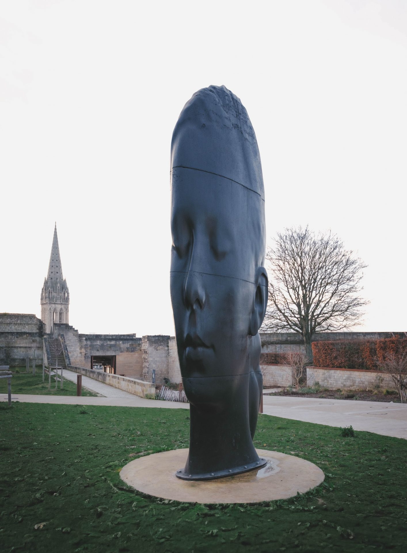Du côté du Château de Caen, la visite a été elle aussi marquante, notamment grâce aux jardins récemment réaménagés. Le travail paysager est superbe et apporte une vraie mise en valeur au site. En se promenant, on passe naturellement des espaces verts aux remparts, qui offrent une vue impressionnante sur toute la ville. Contempler Caen depuis les hauteurs du château permet de prendre conscience de son étendue, de sa diversité, et de son lien constant entre patrimoine et modernité. Nous avons également été sensibles à la présence de la sculpture en forme de visage, Lou. Une œuvre contemporaine qui s’intègre étonnamment bien au site et apporte une touche artistique forte. Le contraste entre la pierre ancienne et cette sculpture moderne crée un dialogue intéressant, qui donne encore plus de relief à la visite.