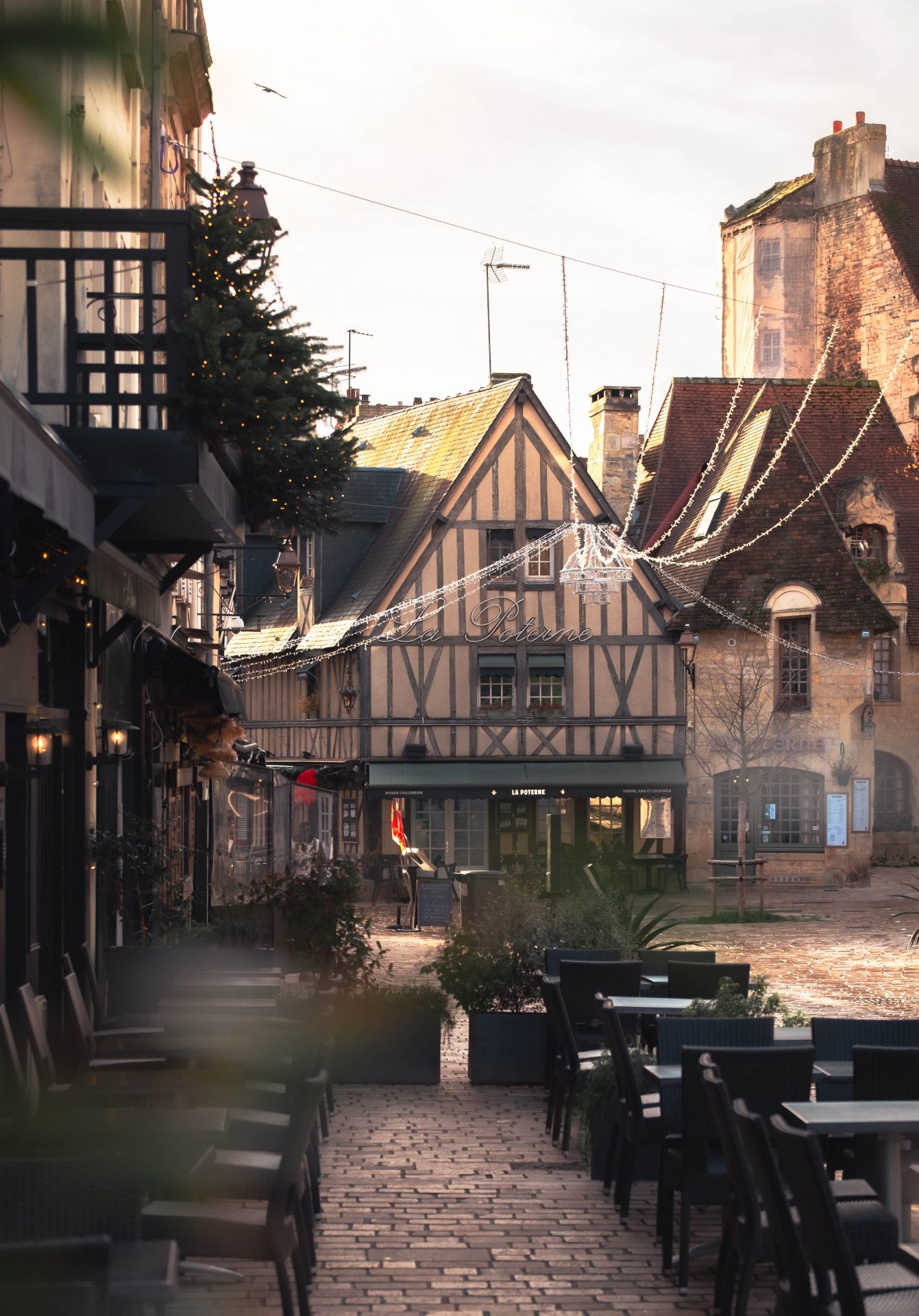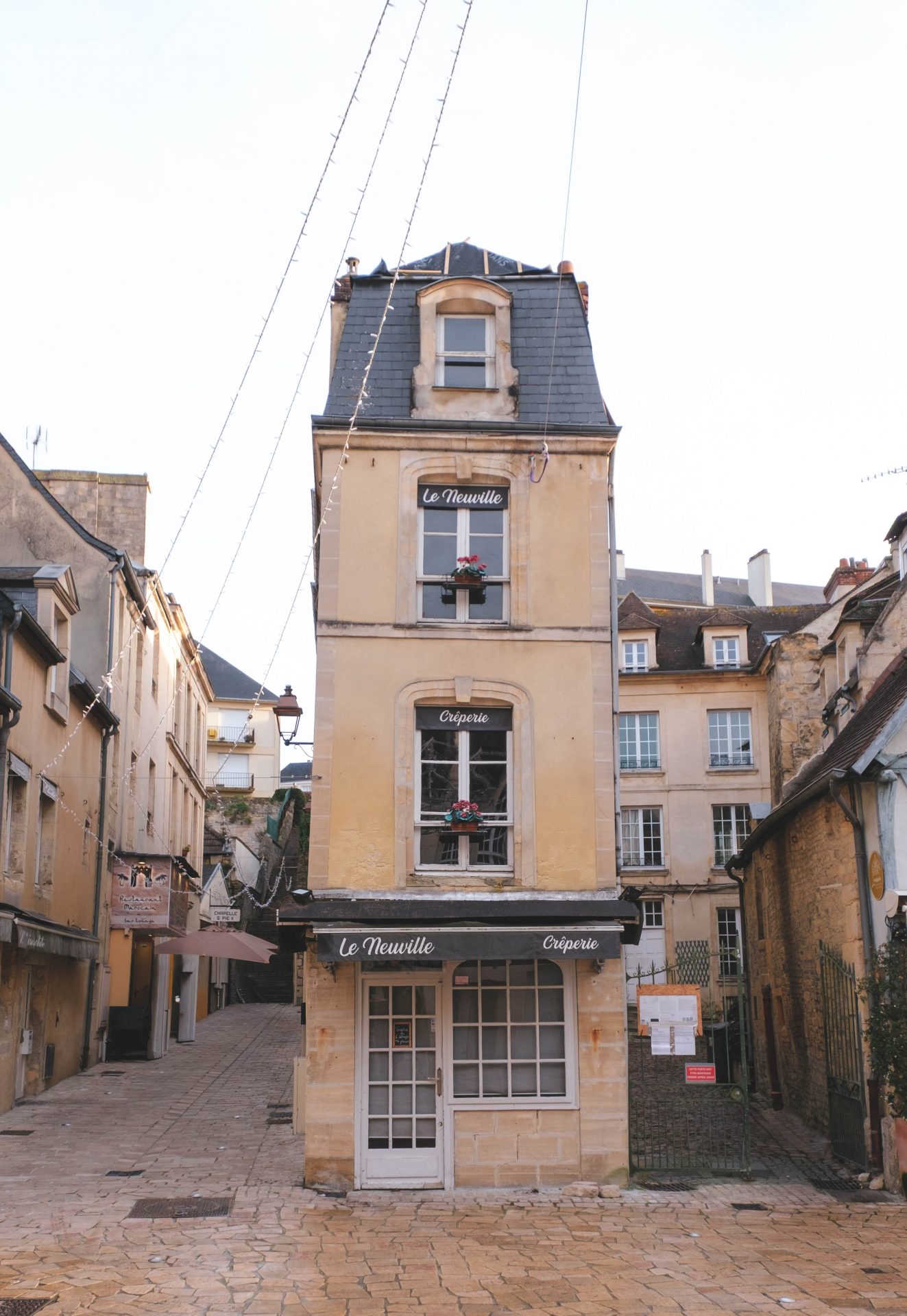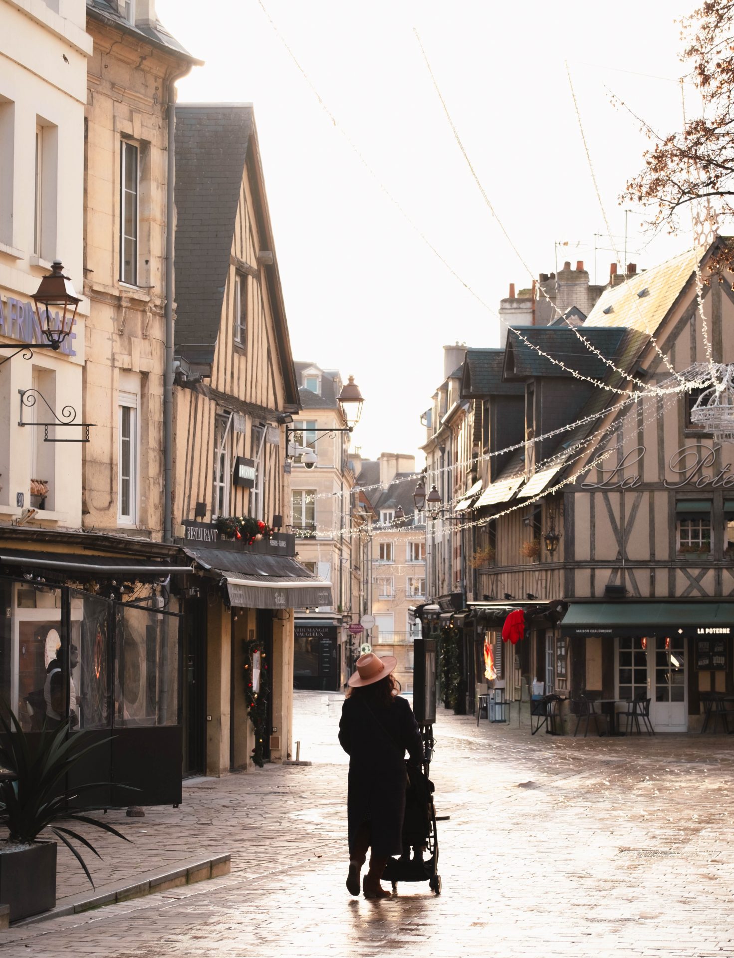 Le quartier du Vaugueux fait partie de ces endroits où l’on aime naturellement ralentir. Niché au pied du château, il dégage une atmosphère à part, presque villageoise, qui contraste avec le reste de la ville. Ici, les ruelles pavées, les façades anciennes et les maisons à colombages créent un décor plein de charme, particulièrement agréable en hiver. Nous avons pris le temps d’y flâner, sans objectif précis, simplement pour profiter de l’ambiance. Les petites rues s’illuminent à la tombée de la nuit, les devantures des restaurants et des commerces apportent une touche chaleureuse, et l’ensemble invite à la déambulation. C’est un quartier vivant, mais jamais bruyant, où l’on se sent rapidement bien. Ce que l’on aime particulièrement au Vaugueux, c’est ce sentiment d’être ailleurs, comme dans une petite enclave hors du temps. Les terrasses, même en hiver, gardent leur convivialité, les pierres racontent l’histoire du lieu, et l’on comprend vite pourquoi ce quartier est l’un des plus appréciés de Caen.