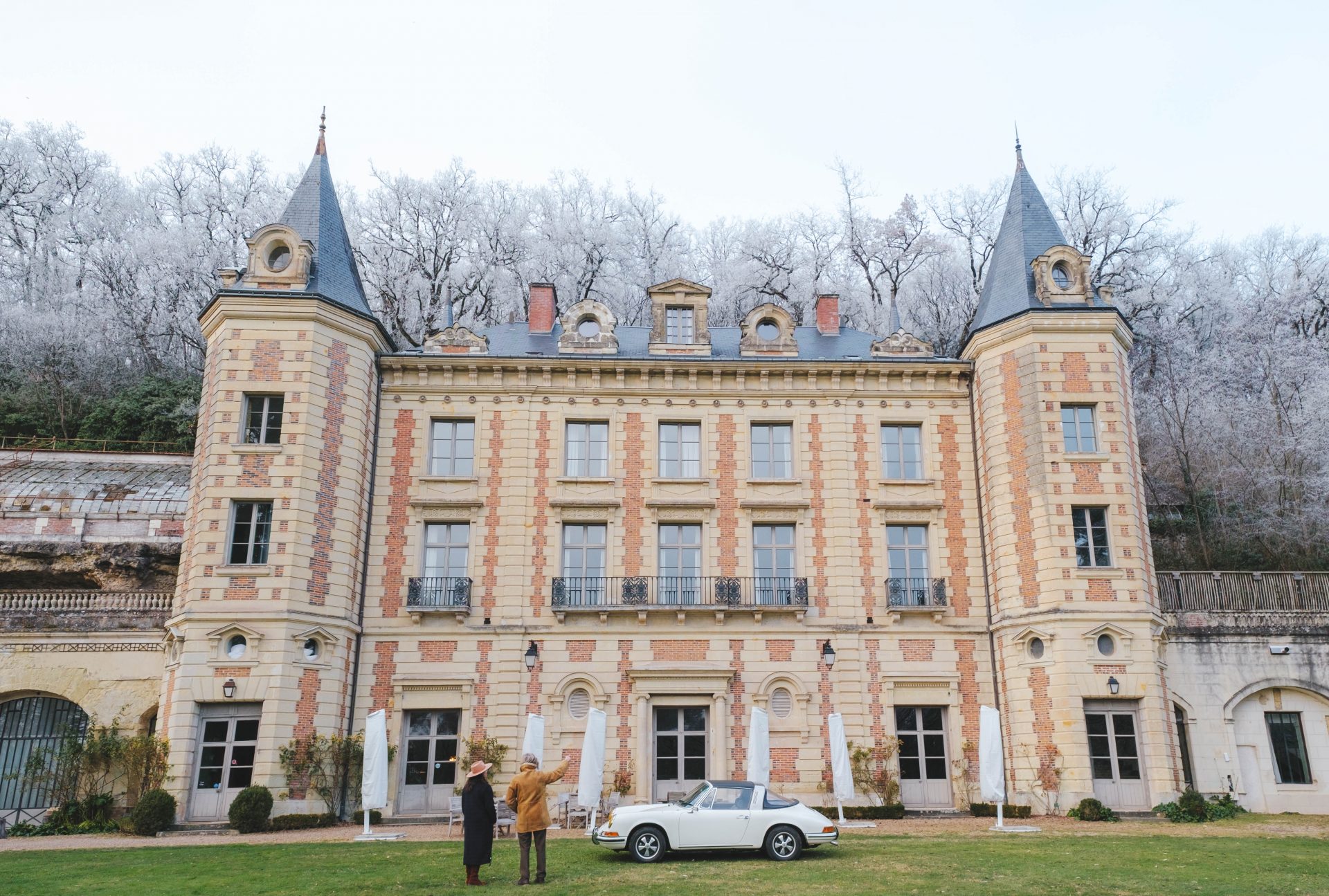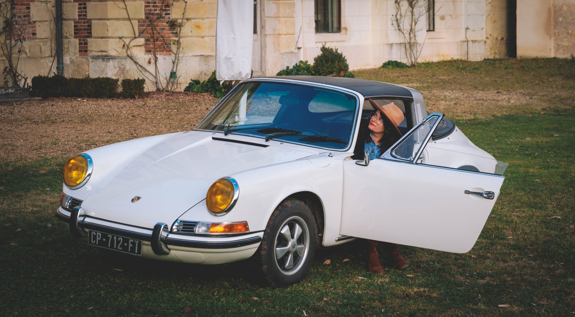 Une autre initiative nous a particulièrement séduits. En collaboration avec Philippe, Olivier propose des expériences autour de la location de voitures anciennes. Il ne s’agit pas de simples prestations, mais de véritables escapades, combinant balade à travers les chemins de campagne, repas et nuitée au château. Ils comptent une vingtaine de voitures de collection, dont certaines absolument magnifiques, comme cette Porsche de 1969 que nous avons eu la chance d’apercevoir. Une idée qui s’inscrit parfaitement dans l’esprit du lieu.