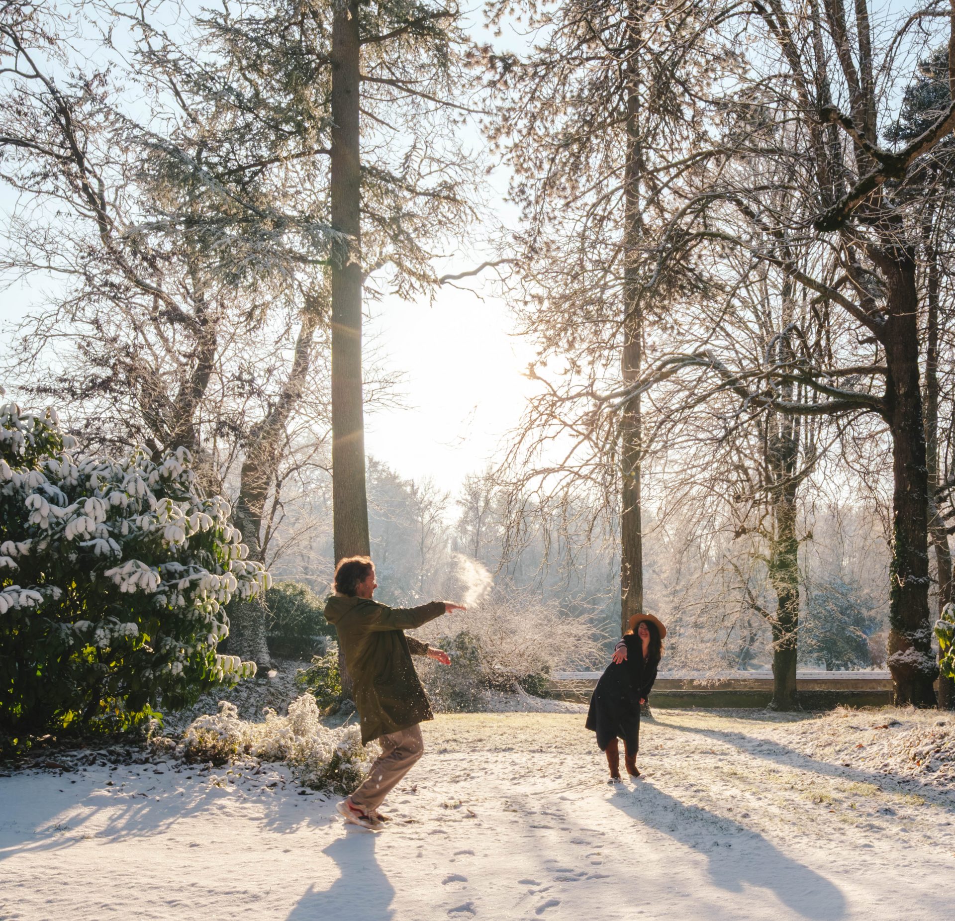 L’hiver donne au Château de Perreux une dimension particulière, presque irréelle. Lorsque nous sommes arrivés, le thermomètre affichait -5 degrés. Les paysages semblaient figés, enveloppés dans un silence profond, comme si le temps s’était suspendu. La vallée de la Cisse, dans laquelle se niche le château, offrait un décor d’une grande pureté. La nature, endormie par le froid, laissait place à des lignes nettes, à une atmosphère brute et apaisante. En journée, nous avons pris le temps de nous balader sur le domaine, sans réel objectif, simplement pour profiter de l’instant. Les chemins serpentent doucement autour du château, offrant de belles perspectives sur le paysage alentour. Sous la lumière hivernale, chaque détail prend une autre dimension. Les arbres, alourdis par la neige, dessinent des silhouettes graphiques. Le sol craque sous les pas. Le silence est total, profondément reposant.