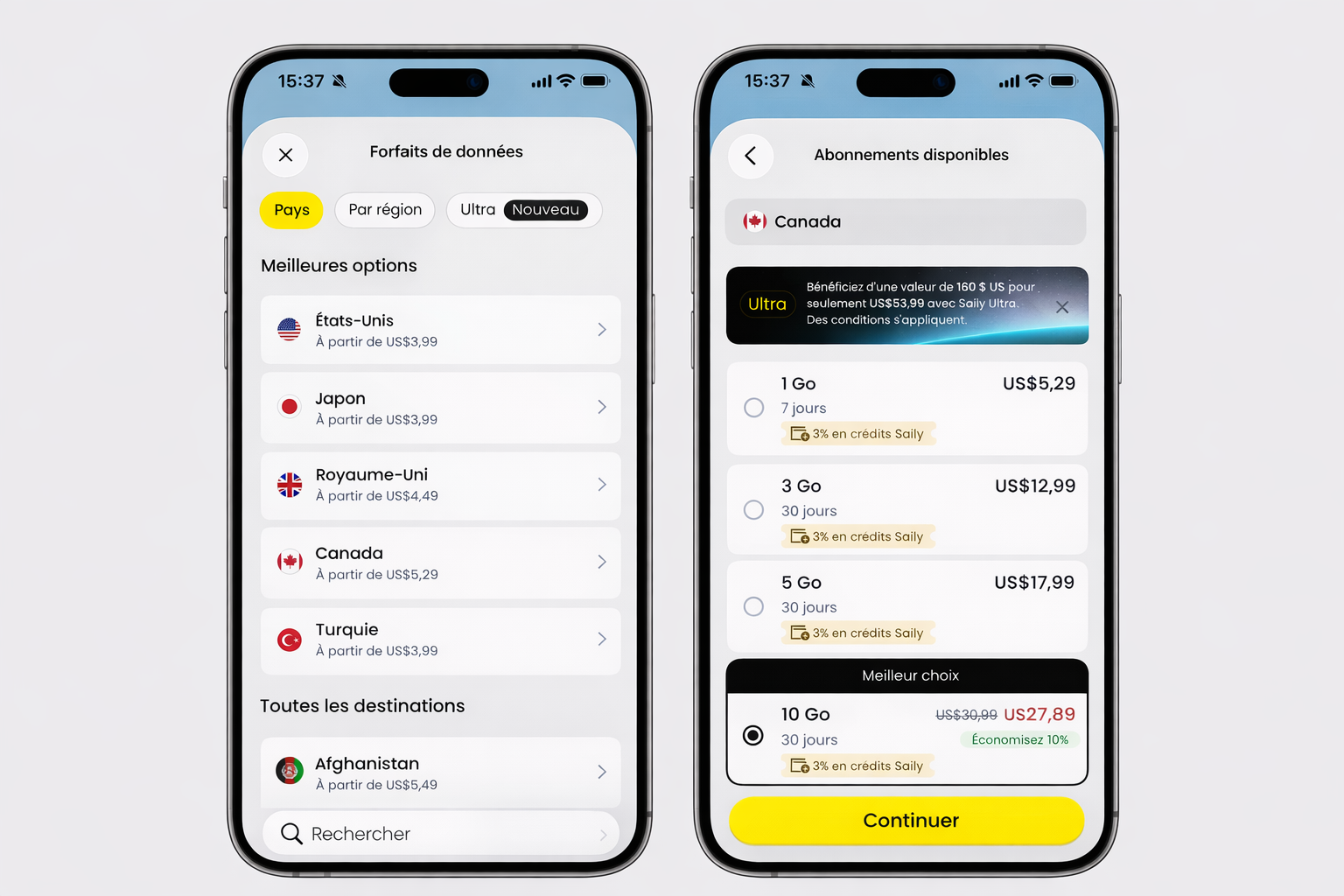 Côté prix, les tarifs varient selon les destinations et le volume de data choisi, mais on s’est rendu compte qu’ils restaient globalement bien positionnés.