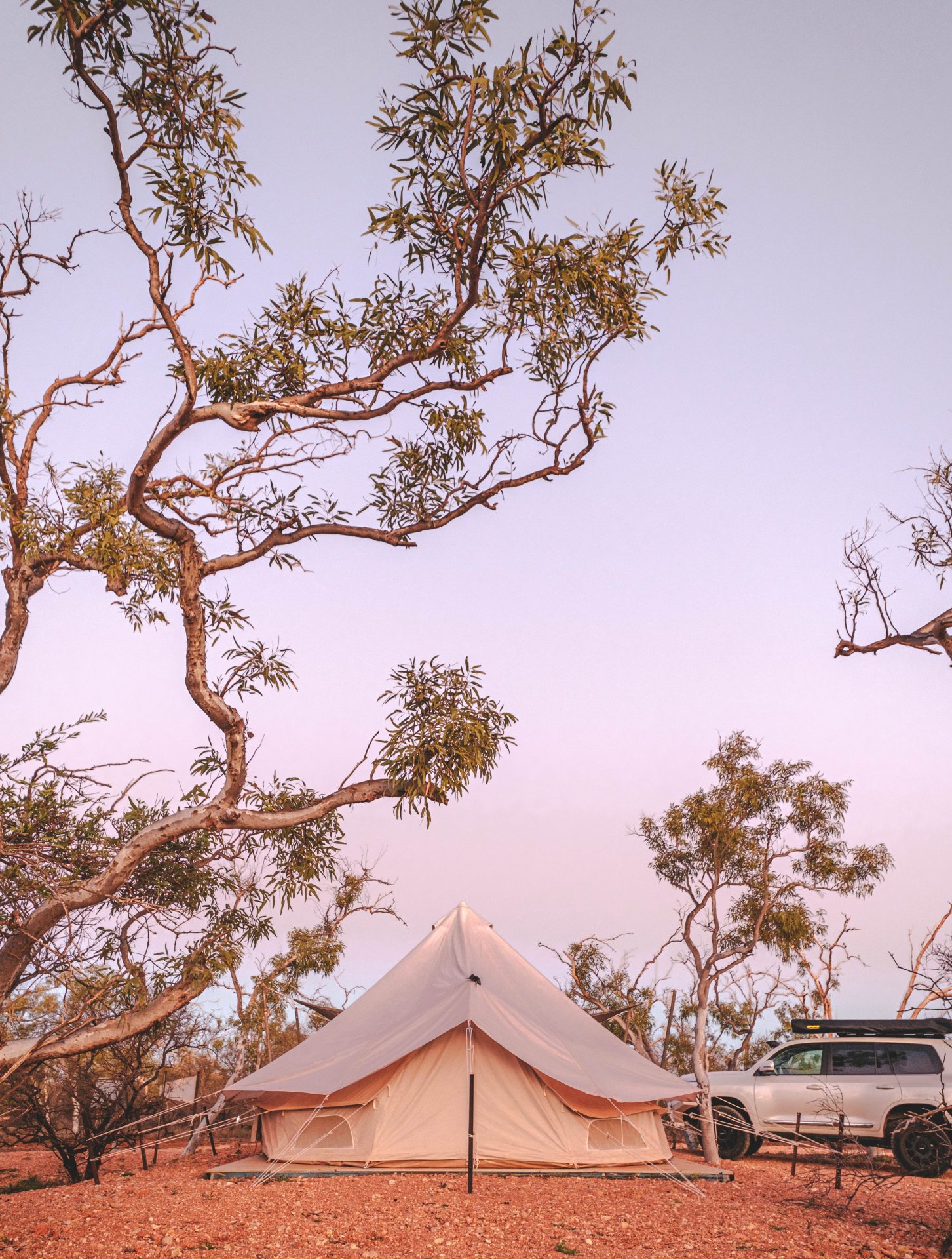 Bullara Station offre une expérience australienne authentique qui reste gravée dans les mémoires. Située en plein cœur de l’outbac, cette station de bétail en activité ouvre ses portes aux visiteurs pour une aventure unique et mémorable. C’est Elodie, fondatrice de l’agence Travel for Good qui nous la recommandé, après y avoir vécu plusieurs mois ! Notre arrivée à Bullara coïncidait avec la célèbre burger night, qui a lieu le vendredi soir, un moment de convivialité inégalé où chacun apporte sa chaise de camping et ses boissons pour partager un délicieux burger. L’ambiance était détendue et joyeuse, avec un concert qui ajoutait à l’atmosphère festive sous les étoiles de l’outback. Le lendemain, nous avons été prendre un petit déjeuner exceptionnel composé de scones mythiques servis avec de la crème et de la confiture, accompagnés d’un excellent café. Tout cela était servi dans une grange magnifiquement aménagée, rappelant les décors d’un film western. L’exploration de Bullara ne s’arrêtait pas là. Nous avons profité des nombreux chemins de randonnée qui partent directement de la ferme, offrant des vues spectaculaires sur l’outback sauvage et préservé. Un des moments forts a été notre balade jusqu’aux dunes de sable rouge, situées à seulement 20 minutes à pied. Le coucher du soleil là-bas était simplement magique, avec des couleurs flamboyantes qui se reflétaient sur les dunes, créant un spectacle naturel époustouflant. Nous avons choisi de passer notre deuxième nuit dans une Bell Tent. Dormir sous le ciel étoilé de l’outback, dans une tente confortable et bien aménagée, combinant aventure et confort.