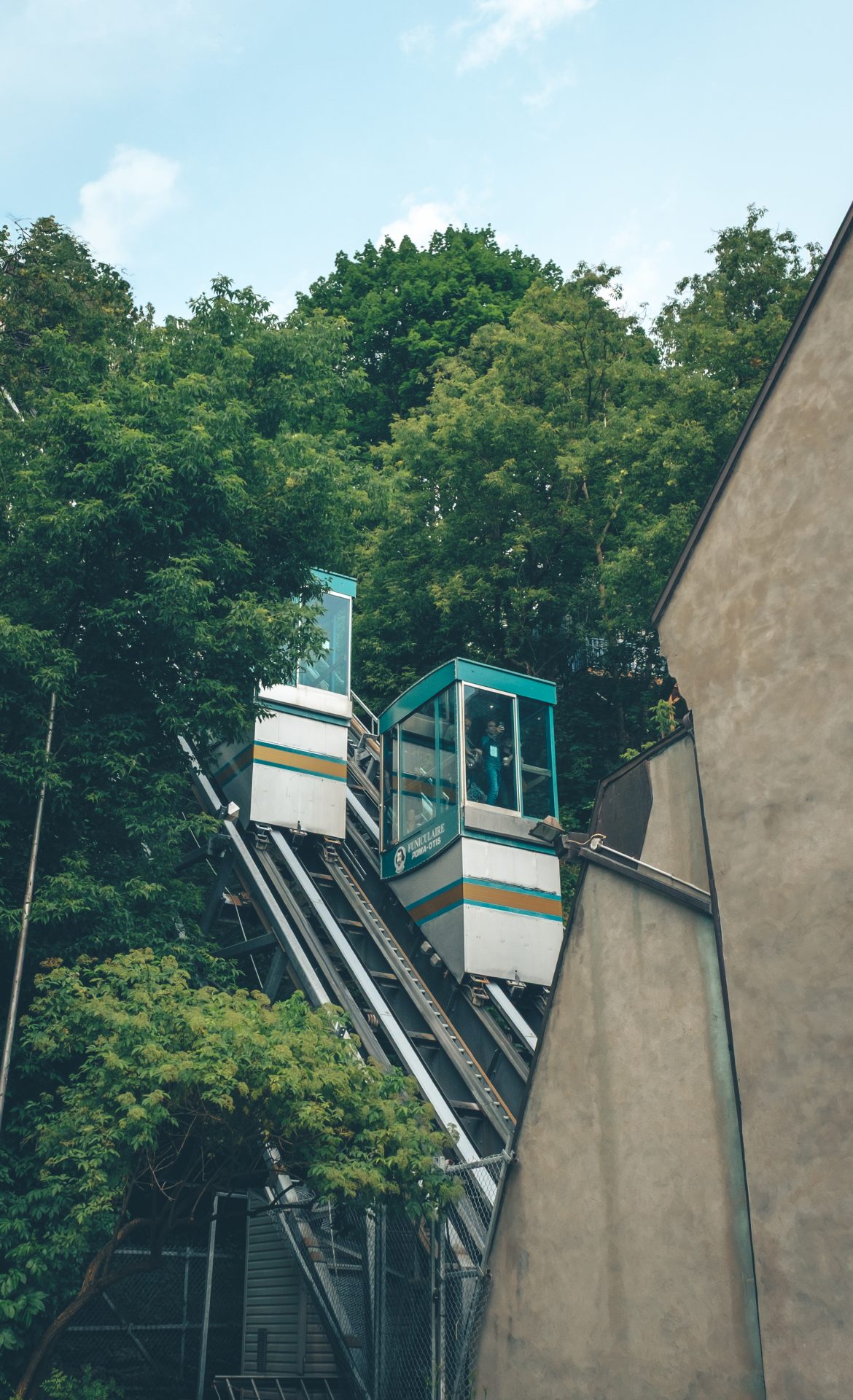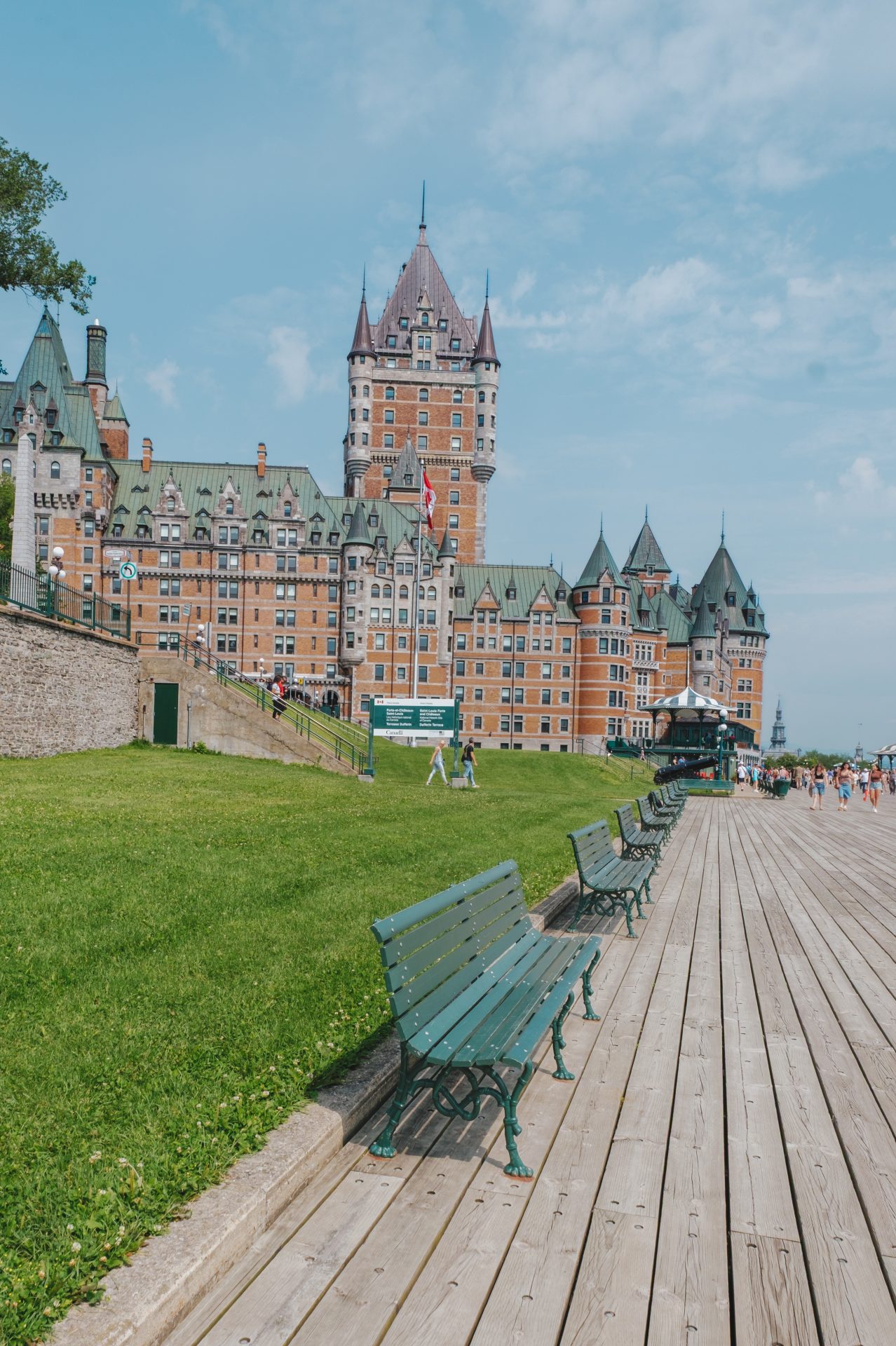 Parmi les rues qui nous ont marqués, il y a bien sûr la rue du Petit-Champlain, carte postale à elle seule, mais aussi la rue Sous-le-Fort, qui mène directement au funiculaire. Ce dernier a été une petite aventure pour James : grimper presque à la verticale et voir défiler la ville sous ses yeux l’a beaucoup amusé. Pour nous, c’était surtout un moyen pratique (et agréable !) de rejoindre la Haute-Ville sans gravir toutes les marches. Là-haut, on retrouve la majesté du Château Frontenac qui domine le fleuve, et les rues comme Saint-Jean et Saint-Louis, idéales pour sentir l’énergie locale avec leurs terrasses animées et leurs librairies. Mention spéciale pour la rue du Trésor, une véritable galerie d’art à ciel ouvert où les artistes exposent leurs œuvres entre deux façades historiques – nous aurions pu y passer des heures. Plus discrète, la rue d’Auteuil, bordée de verdure, invite à une balade plus calme le long des fortifications. Un peu plus loin, changement d’ambiance avec les Plaines d’Abraham, ce grand espace vert en surplomb du Saint-Laurent. L’endroit est chargé d’histoire, puisque c’est ici qu’eut lieu la célèbre bataille de 1759, mais aujourd’hui, c’est surtout un immense terrain de jeu où se croisent joggeurs, familles, promeneurs et musiciens.