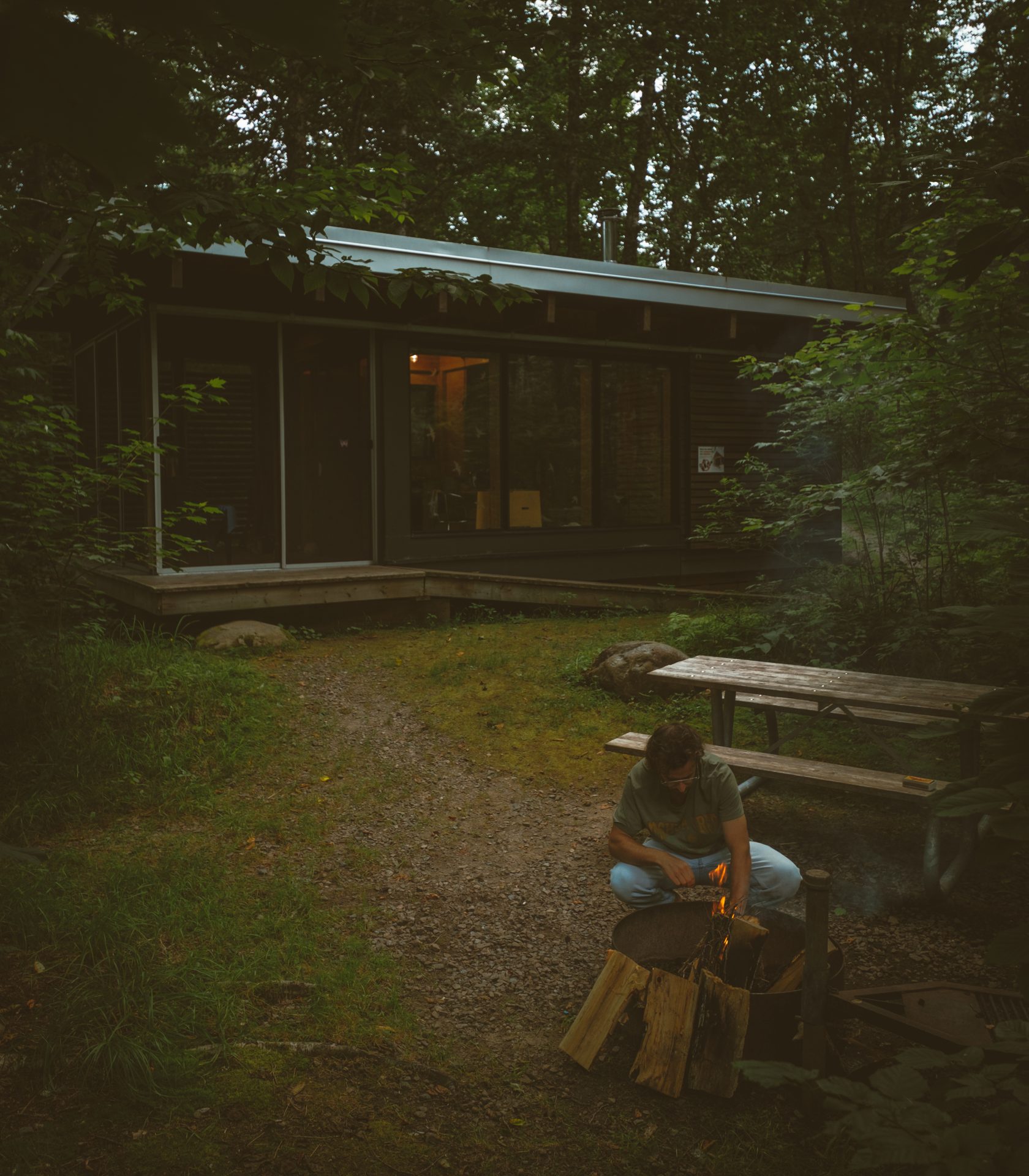 Nous avons passé la nuit dans un chalet EXP « La Source », et ce fut une expérience unique. Notre petit cocon en bois, niché au milieu des arbres, offrait tout le confort nécessaire sans superflu. Le soir, nous avons allumé un feu de camp devant le chalet, grillé des guimauves et écouté les sons de la forêt. James s’est endormi bercé par le crépitement du feu et les bruits de la nature. C’était simple, authentique et tellement précieux. Le genre de nuit qui fait partie intégrante du voyage et qu’on ne peut vivre qu’ici.