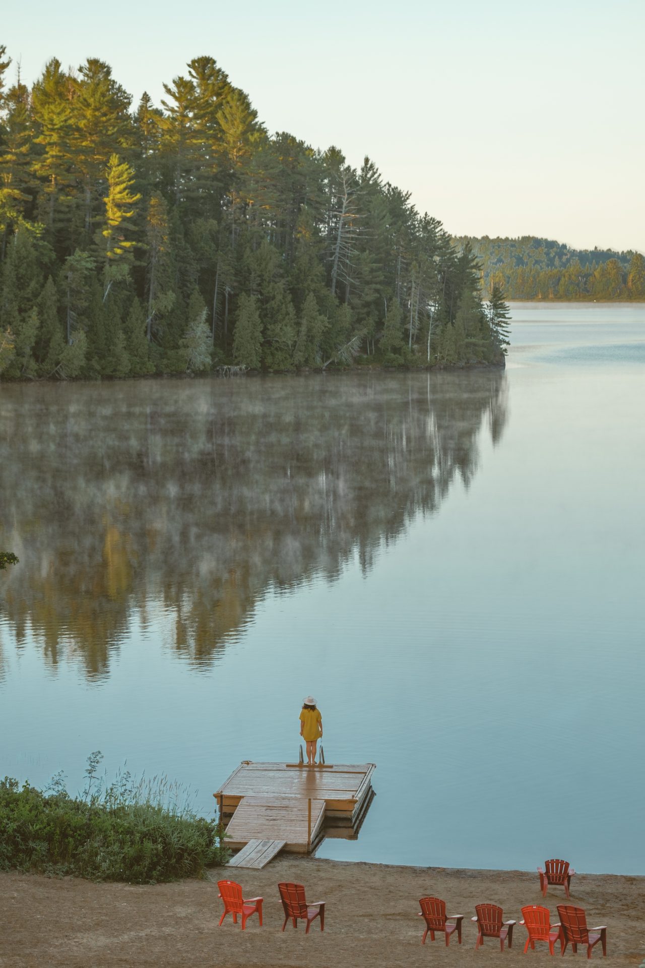 Les activités ne manquent pas ici. Nous avons pagayé en canoë, essayé le kayak, profité du pédalo et même de la piscine intérieure quand la météo s’est couverte. Mais le moment fort de notre séjour a été l’expérience unique d’un vol en hélicoptère au-dessus des lacs environnants. Voir ces étendues d’eau scintiller sous le soleil, cerclées par la forêt, restera un souvenir gravé à jamais. Le soir, après une balade au bord du lac et quelques instants de pêche, nous avons eu la chance d’assister à un coucher de soleil incroyable : le ciel se teintait de rose et d’orange, et l’eau reflétait chaque nuance avec une intensité presque irréelle. De mon côté, j’ai aussi vécu un moment très fort : un lever de soleil seule en kayak, dans un silence total. Seule au milieu du lac, entourée par le calme et la beauté brute du paysage, c’était un de ces instants où le temps semble suspendu.