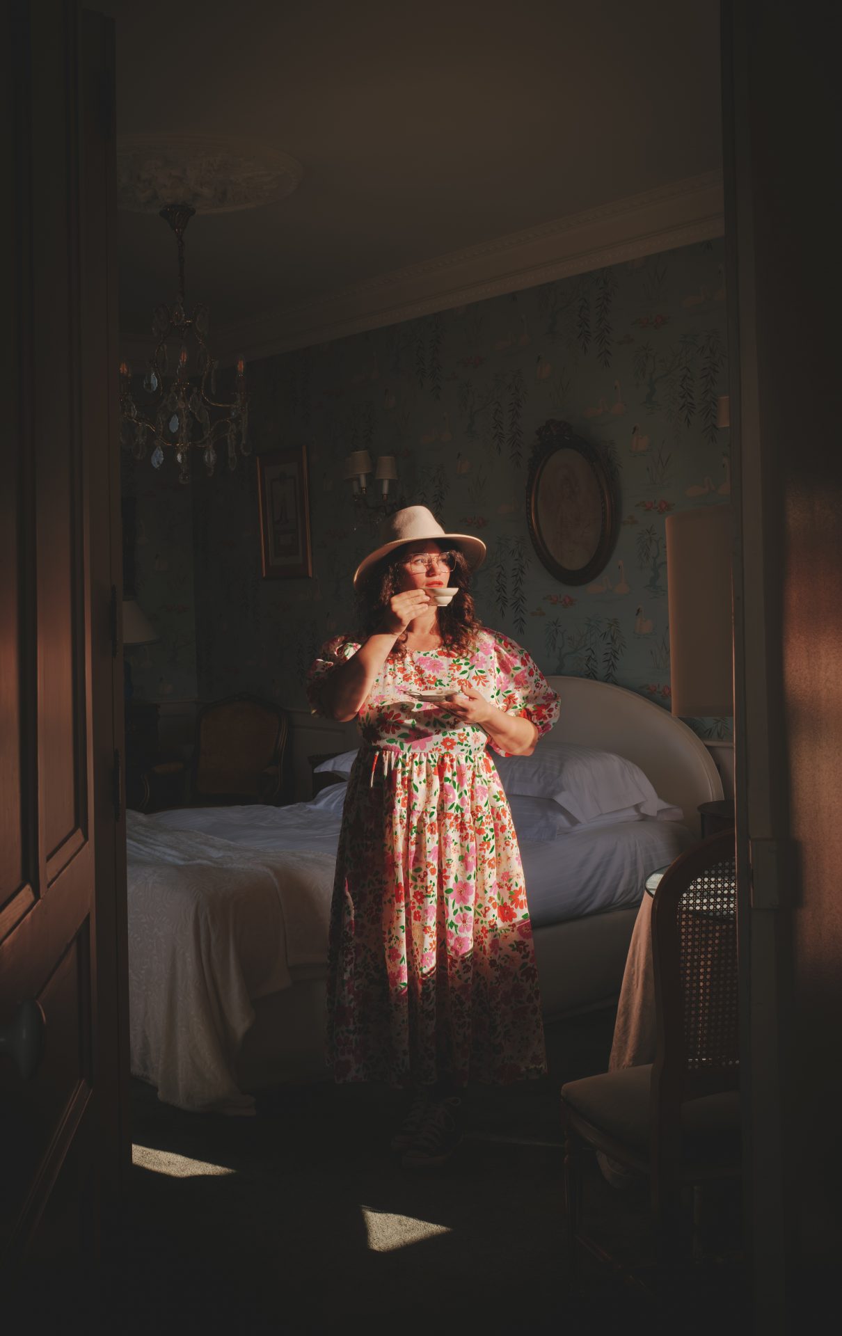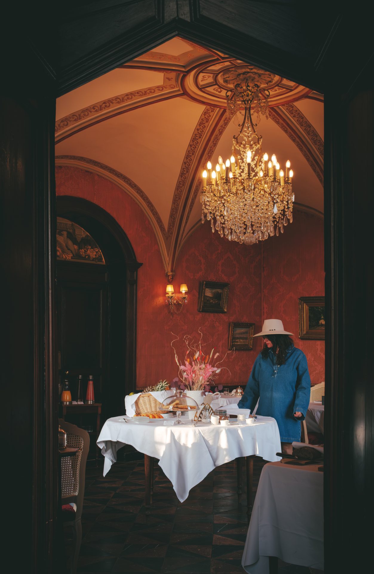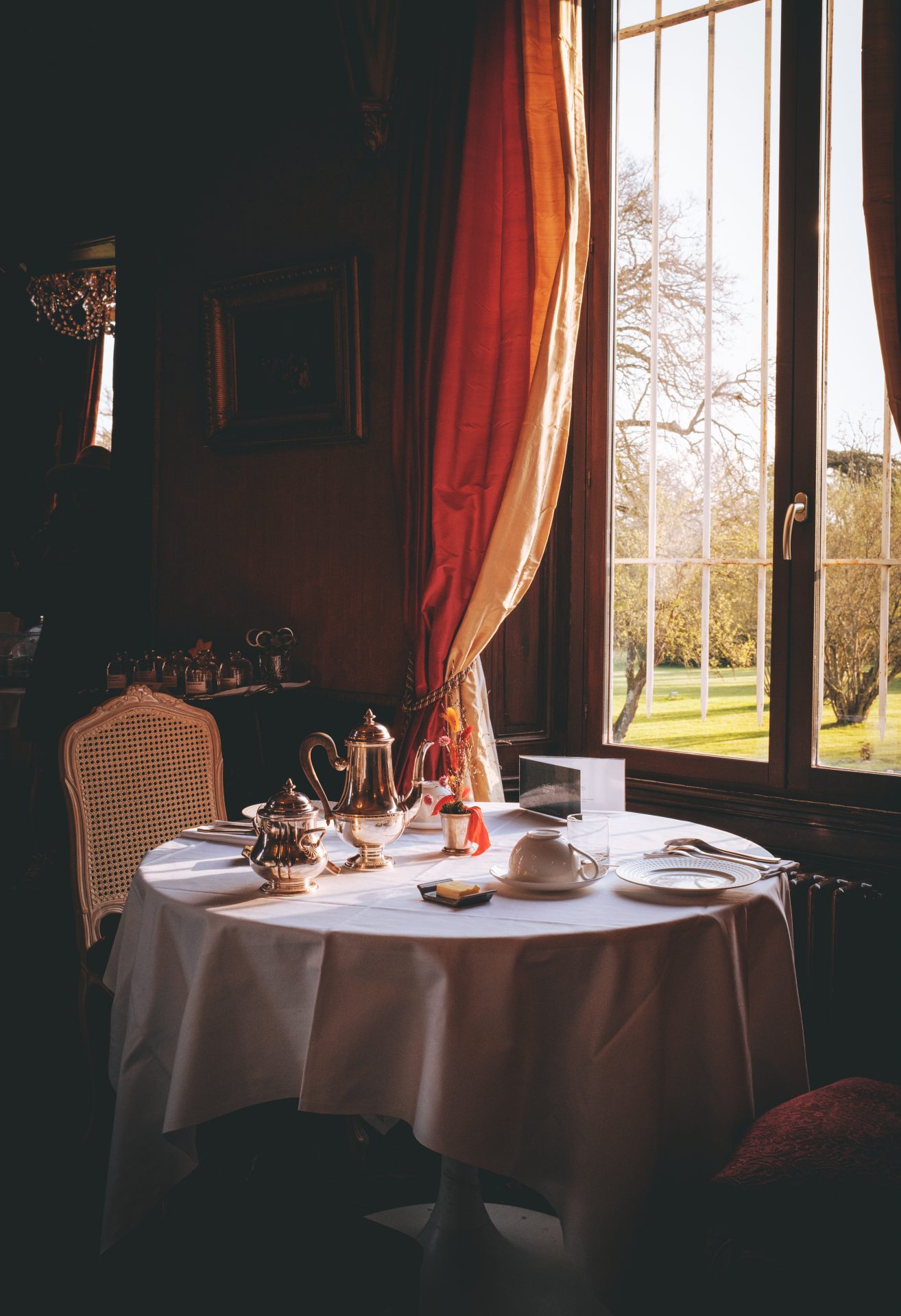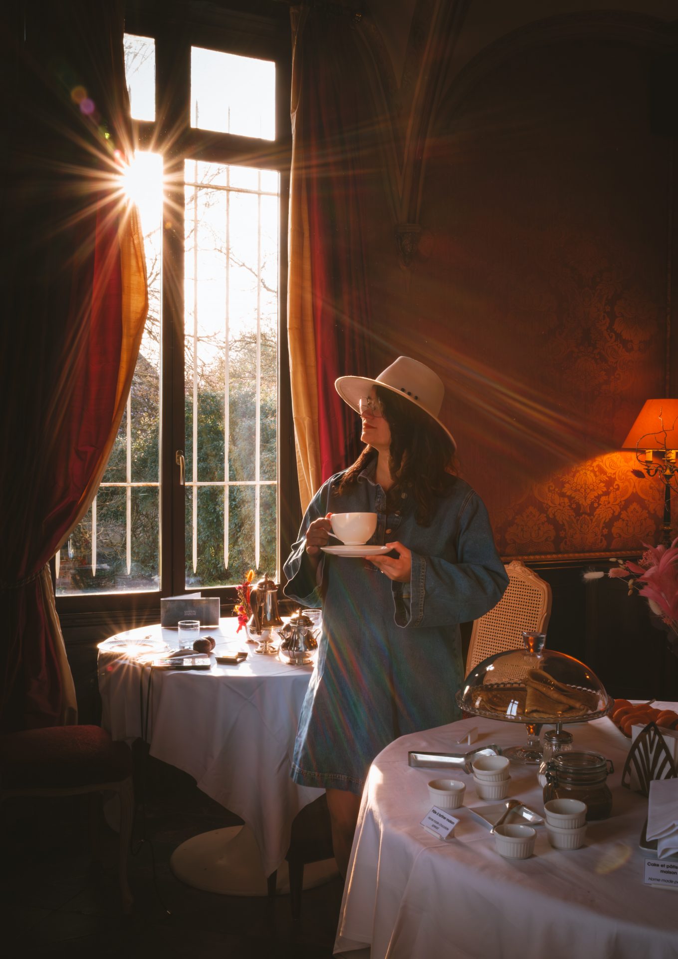 À seulement quinze minutes du centre-ville de Rennes, le Château d’Apigné nous a offert une parenthèse absolument exceptionnelle. Dès l’arrivée, on comprend pourquoi il s’agit d’un établissement 5 étoiles. L’allée bordée d’arbres, l’étang, la silhouette élégante du château… tout nous plonge immédiatement dans une autre époque. Nous avons eu la chance de séjourner dans le château, dans la chambre « Charles », une chambre supérieure aux tapisseries bleu, ornée de lustres délicats et de tableaux chinés. Chaque détail semble raconter une histoire : les petites tasses anciennes, les moulures, les étoffes, la vue paisible sur le parc et l’étang. On se surprend à ralentir, à savourer l’instant. L’ambiance évoque presque l’univers d’une série comme Bridgerton, avec ce mélange de romantisme et d’élégance intemporelle. Les parties communes sont tout aussi soignées. Les salons, baignés de lumière, invitent à la lecture ou à la contemplation. Les jardins du château, parfaitement entretenus, offrent de belles promenades bucoliques au printemps. On imagine sans peine les grandes réceptions d’autrefois. Ici, on ne vient pas seulement dormir, on vient vivre l’expérience d’une vie de château.