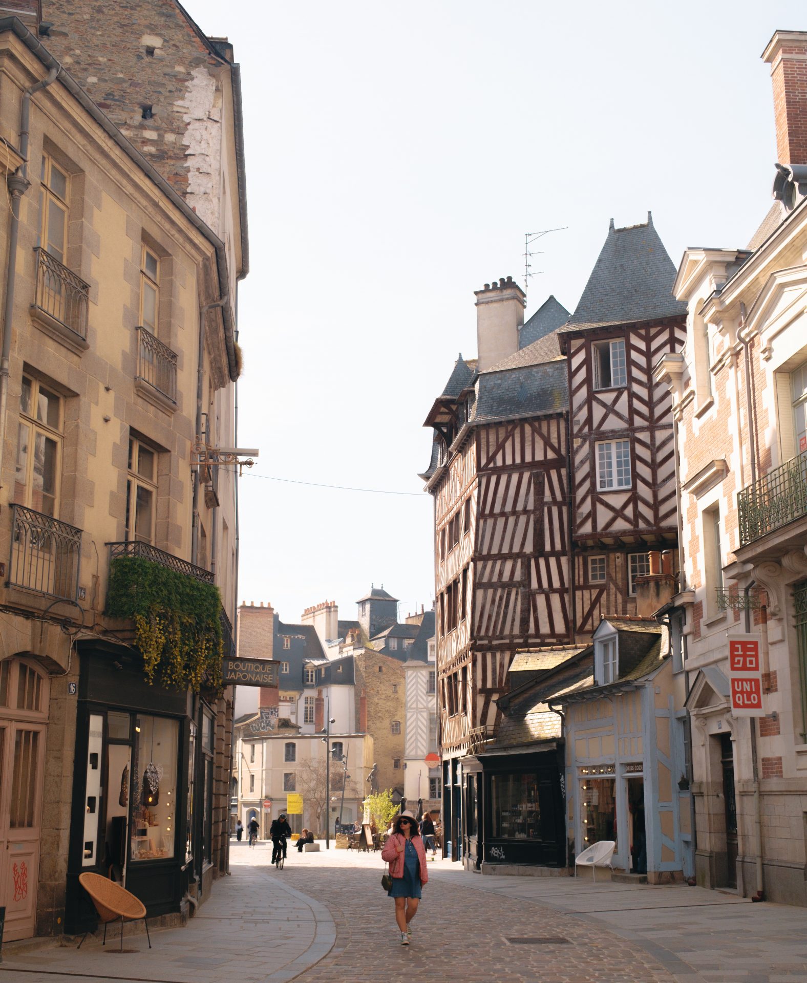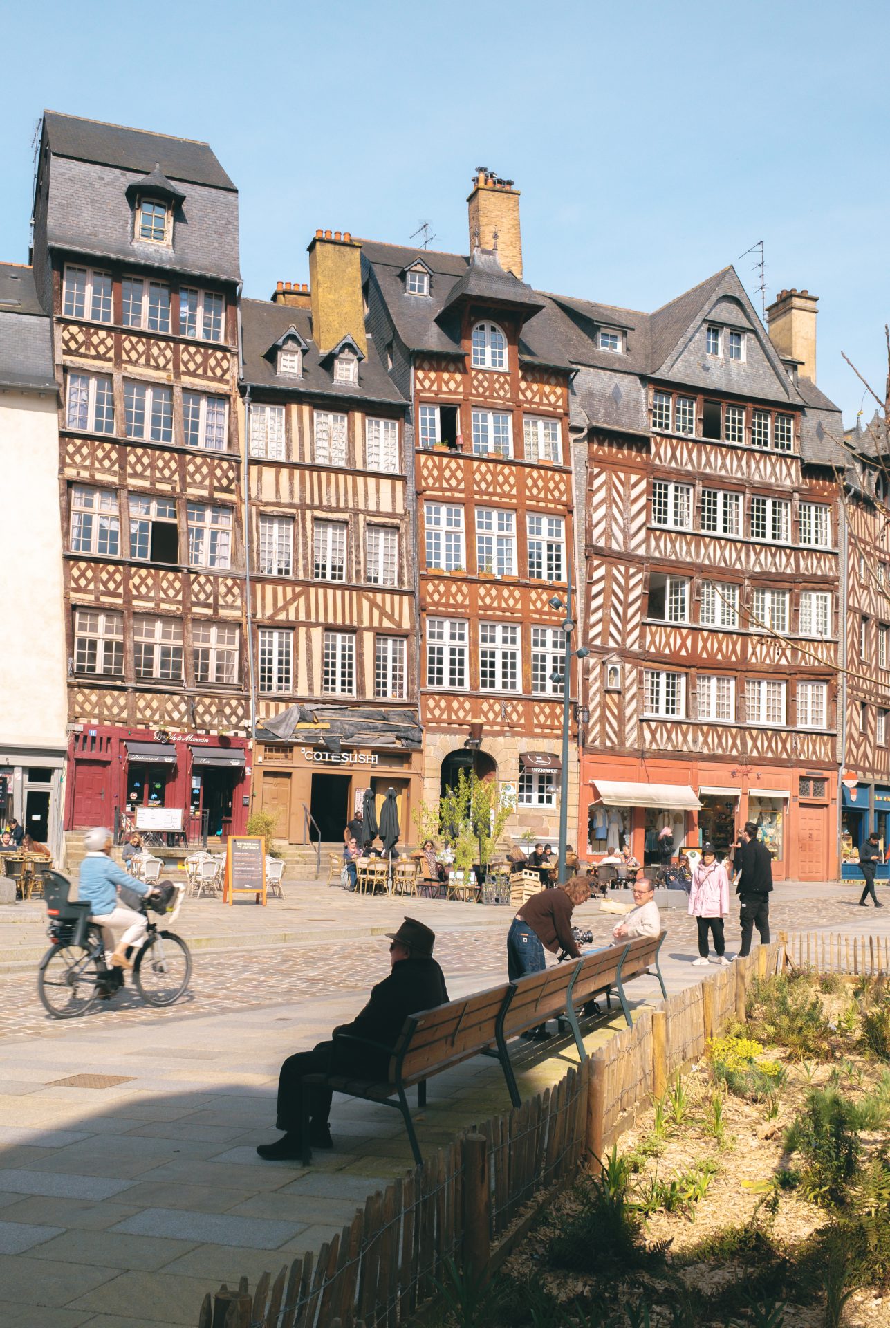 Nous aimons commencer notre balade place des Lices, célèbre pour son marché du samedi matin et ses premières maisons en pans de bois. En poursuivant vers les Portes Mordelaises, vestiges des anciens remparts où furent couronnés les ducs de Bretagne, on traverse l’une des parties les plus chargées d’histoire de la ville. Le pont-levis et les ruelles pavées donnent presque l’impression de remonter le temps. La rue Saint-Michel, surnommée “rue de la soif”, mène ensuite vers la place Sainte-Anne, animée et vivante, où se côtoient maisons à colombages, basilique Saint-Aubin et le Couvent des Jacobins, aujourd’hui centre des congrès. Plus loin, la place Hoche et son carrousel ancien apportent une touche presque nostalgique. Nous aimons également la rue Saint-Melaine qui conduit vers le parc du Thabor, ou encore la rue Saint-Georges, devenue l’un des quartiers les plus dynamiques pour se retrouver autour d’un café ou d’un dîner. C’est ici que se trouve la librairie Le Failler, l’une des plus belles de la ville. Impossible de ne pas s’arrêter place du Champ Jacquet, récemment réaménagée. Sa forme triangulaire et ses hautes demeures à pans de bois en font l’un des symboles de Rennes. Au printemps, les terrasses s’y installent et l’atmosphère devient particulièrement agréable. Enfin, prenez le temps de vous perdre autour de la cathédrale Saint-Pierre et dans les ruelles de la rue du Chapitre. C’est ici que l’on ressent toute la douceur de Rennes au printemps : une ville à taille humaine, élégante sans être prétentieuse, vivante sans être oppressante.