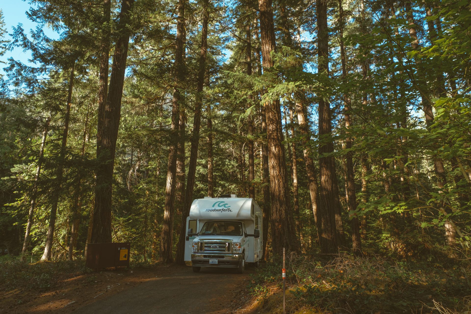 Explorer l’État de Washington en camping-car nous a semblé être la meilleure façon de voyager. Les distances sont raisonnables, les routes scéniques magnifiques, et les campings nombreux et variés. Voyager ainsi nous a offert une liberté précieuse : s’arrêter où l’on veut, cuisiner face à un lac ou au bord de l’océan, et profiter des soirées autour du feu de camp. Avec un enfant, c’est aussi très pratique : James avait toujours son espace, ses jouets et son lit à disposition, ce qui rend chaque étape plus simple et plus sereine. L’État de Washington offre deux grandes options pour les campeurs. D’un côté, il y a les campings situés directement dans les parcs nationaux ou d’État, qui permettent de dormir au cœur de la nature. Réserver une place dans ces campings se fait principalement sur le site recreation.gov, et il est indispensable d’anticiper plusieurs mois à l’avance en été. Ces emplacements sont souvent plus simples (pas toujours d’électricité ni d’eau), mais ils ont l’avantage d’être au plus près des sentiers et des paysages grandioses.
