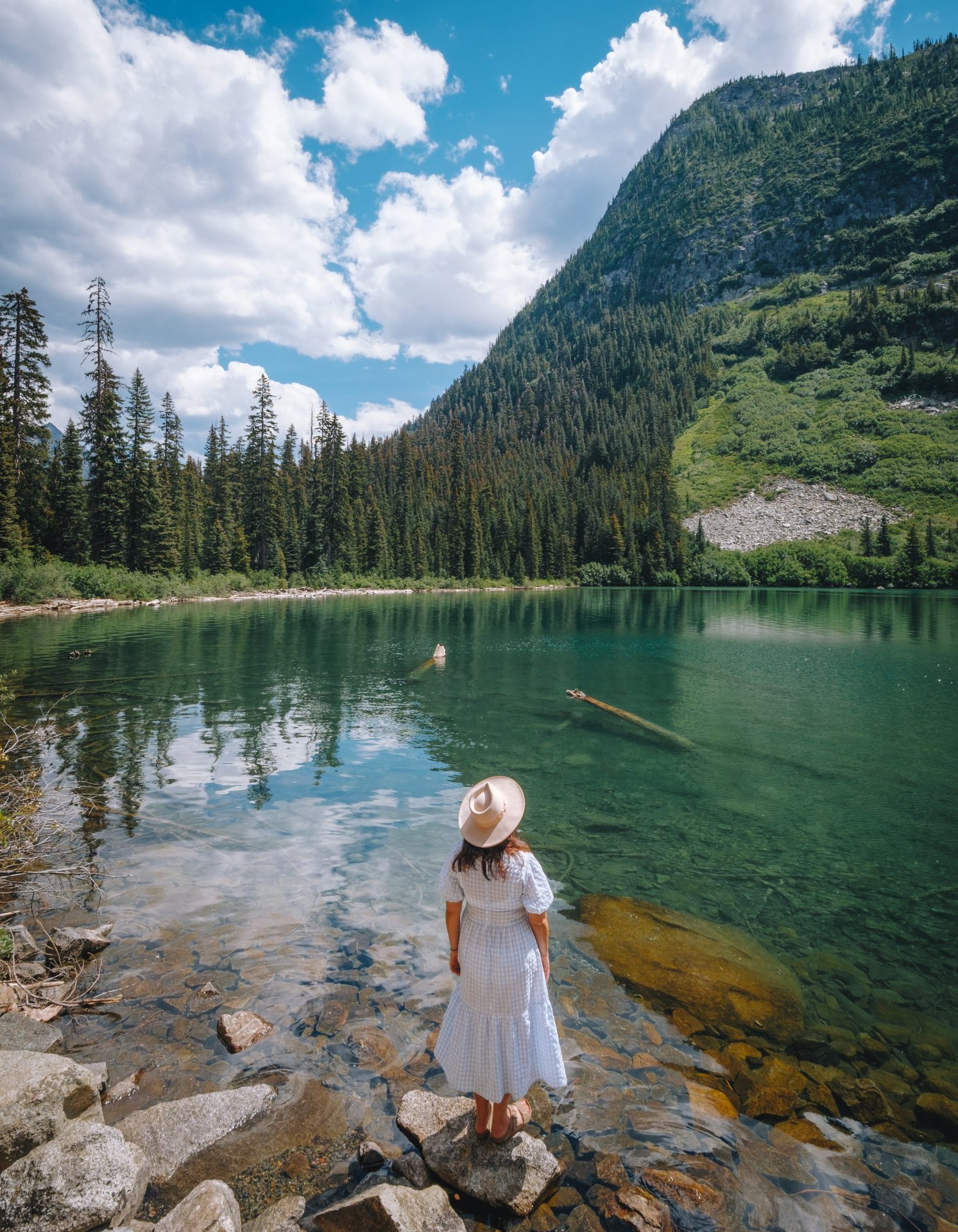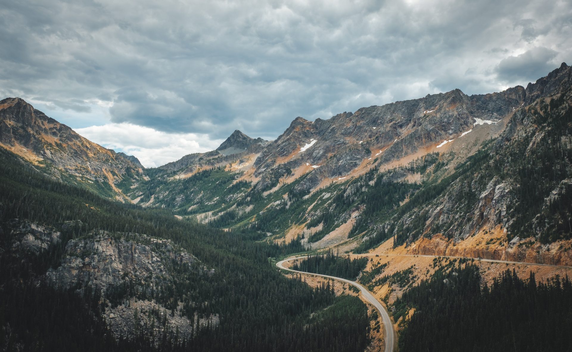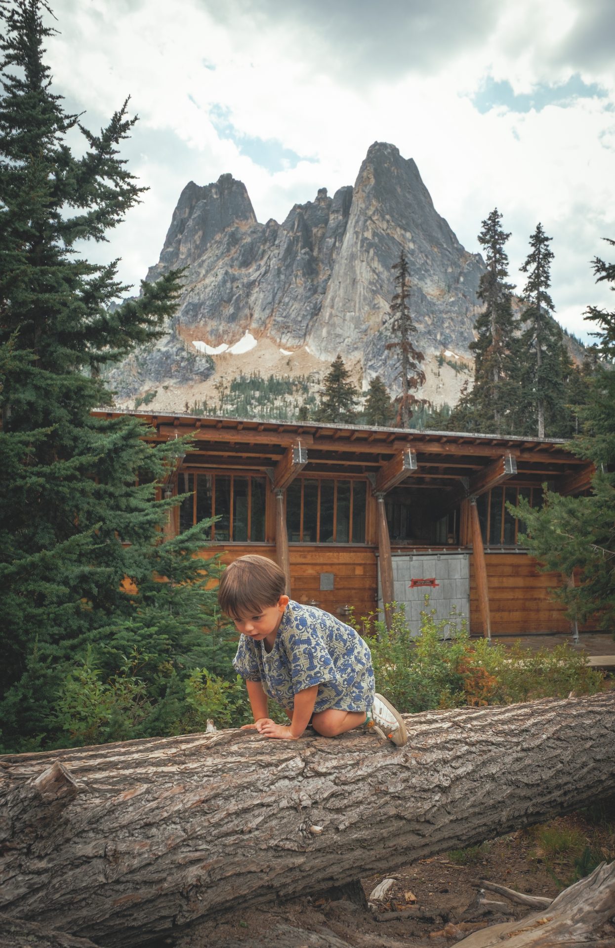 les plus sauvages et les moins fréquentés des États-Unis. Ici, pas de foule ni de villages touristiques : seulement des forêts à perte de vue, des montagnes déchiquetées et des lacs aux eaux incroyablement turquoise. Le simple fait de rouler sur la route scénique qui traverse le parc est déjà une expérience en soi. Notre première halte a été Rainy Lake Trail, une balade idéale avec un enfant. Le sentier, parfaitement plat et accessible en poussette, traverse une belle forêt avant de déboucher sur un lac d’un bleu profond, entouré de montagnes. James a adoré courir sur le chemin, et nous, on a savouré ce décor paisible, presque irréel par sa tranquillité. Nous avons ensuite pris la route jusqu’au Washington Pass Overlook. Ici, le panorama est spectaculaire : des sommets acérés se dressent devant nous, avec la route qui serpente dans la vallée en contrebas. C’est l’un de ces points de vue où l’on reste silencieux quelques instants, simplement pour admirer la beauté brute de la nature. Impossible de passer par North Cascades sans s’arrêter à Diablo Lake Overlook. Le lac, d’une couleur bleu émeraude presque irréelle, est sans doute l’image la plus emblématique du parc. Nous avons eu la chance de le voir par temps clair, et les contrastes entre l’eau turquoise et les montagnes sombres qui l’entourent étaient à couper le souffle.