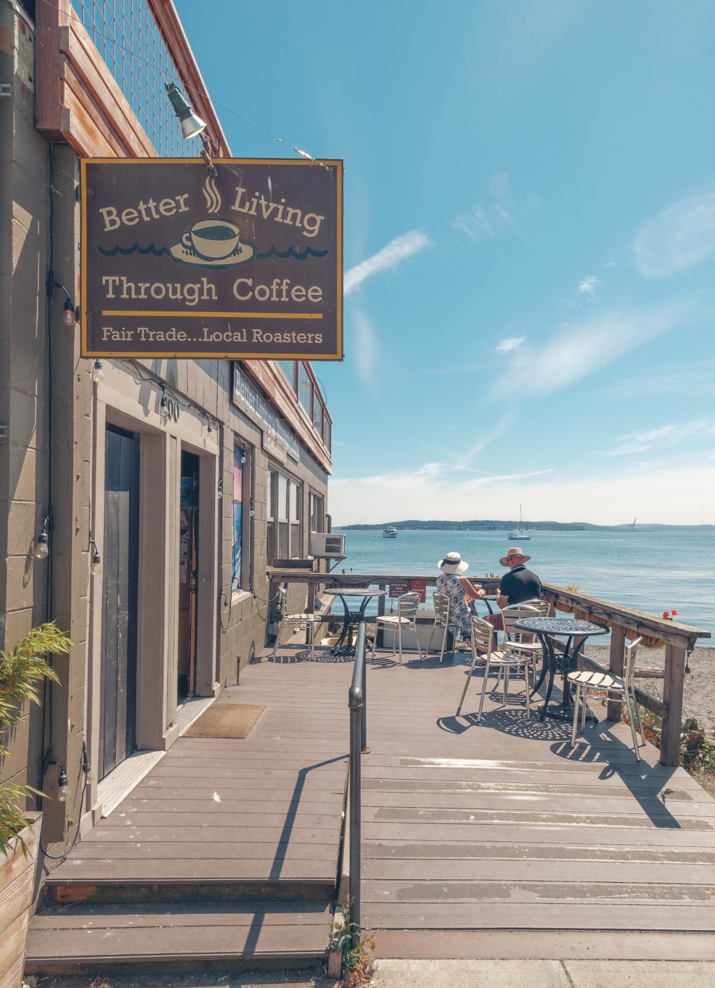 Après une courte traversée en ferry depuis Coupeville, nous avons débarqué à Port Townsend, une petite ville pleine de charme qui nous a immédiatement séduits. Avec ses maisons victoriennes, ses rues animées et sa situation au bord de l’eau, l’endroit a quelque chose de singulier, comme figé dans le temps. En nous promenant dans les rues du centre historique, nous avons eu l’impression d’être dans le décor d’une comédie romantique : façades colorées, vitrines de librairies et de cafés, ambiance un peu rétro où le temps semble s’écouler différemment. C’est une ville qui se prête à la flânerie, au simple plaisir de regarder autour de soi. Nous avons longé le front de mer avant de nous arrêter au café Better Living Through Coffee, une adresse conviviale où nous avons savouré un excellent café face à la baie. Le genre de pause qui donne envie de s’attarder, simplement pour profiter du moment.