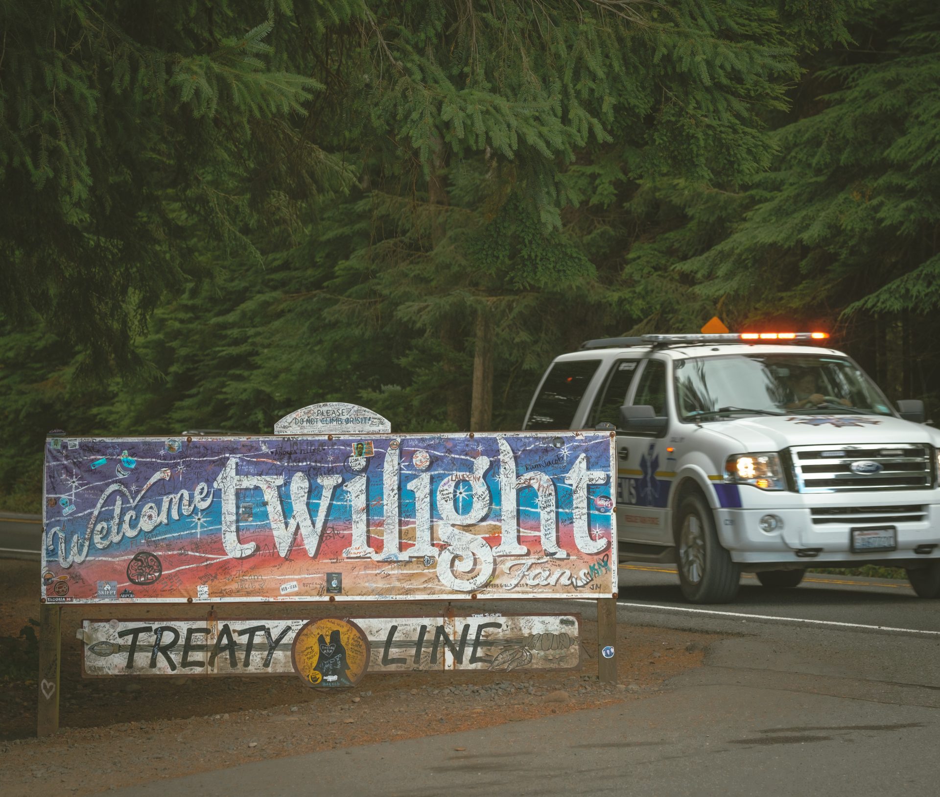 Forks n’est pas une ville comme les autres : elle doit une grande partie de sa notoriété à la saga Twilight, qui y a situé son intrigue. Sur place, difficile de passer à côté de cette influence. Le Visitor Center accueille les fans avec des références à Bella et Edward, et plusieurs lieux emblématiques de la série peuvent se visiter. Nous avons pris plaisir à suivre ce petit circuit : le lycée de Forks, la maison de Bella, la station de police ou encore l’hôpital. Même si certains bâtiments n’ont servi que de décor extérieur, la balade est amusante et plonge instantanément dans l’ambiance de la saga. Pour James, c’était une simple promenade à travers la ville, mais pour nous, un clin d’œil amusant à une époque où nous avons découvert ces films. Au-delà de Twilight, Forks a un charme discret de petite ville américaine, avec ses diners, ses boutiques locales et son atmosphère un peu hors du temps. Elle marque aussi une étape parfaite pour rejoindre la côte pacifique et les plages de La Push et First Beach, qui apparaissent elles aussi dans la saga. Marcher sur le sable avec les troncs d’arbres échoués, observer les vagues puissantes et sentir l’air marin nous a permis de voir un autre visage de Washington, plus sauvage et authentique.