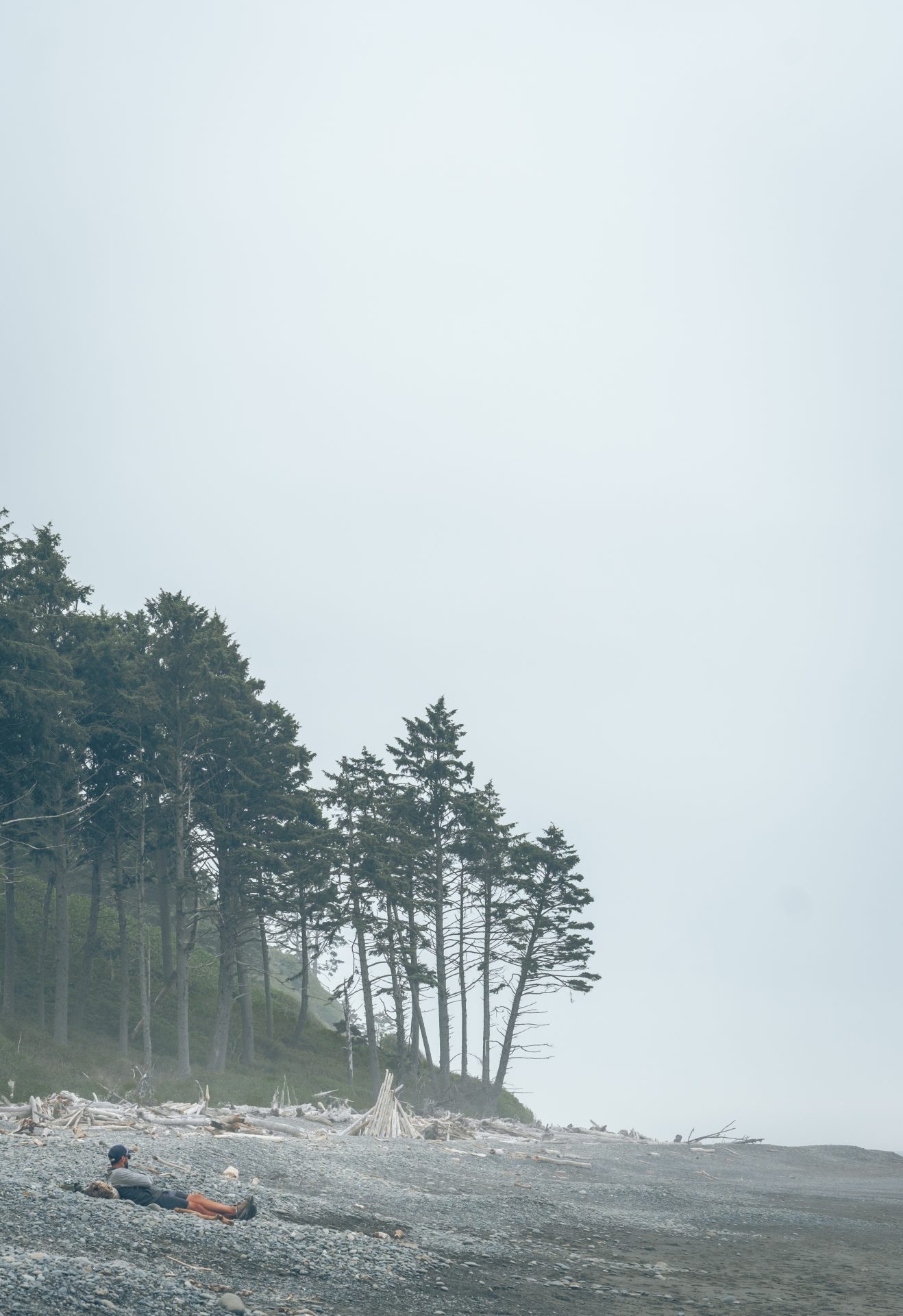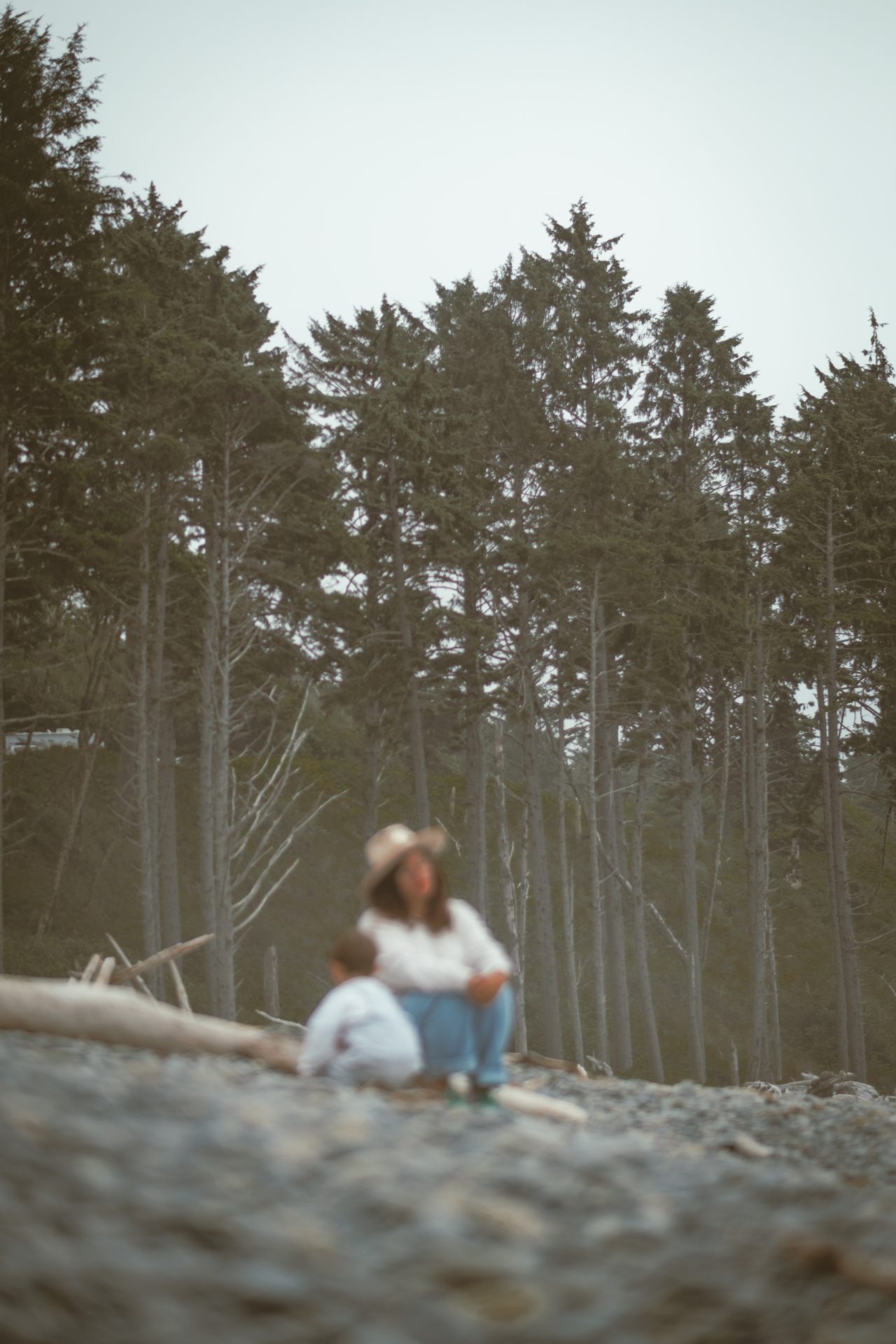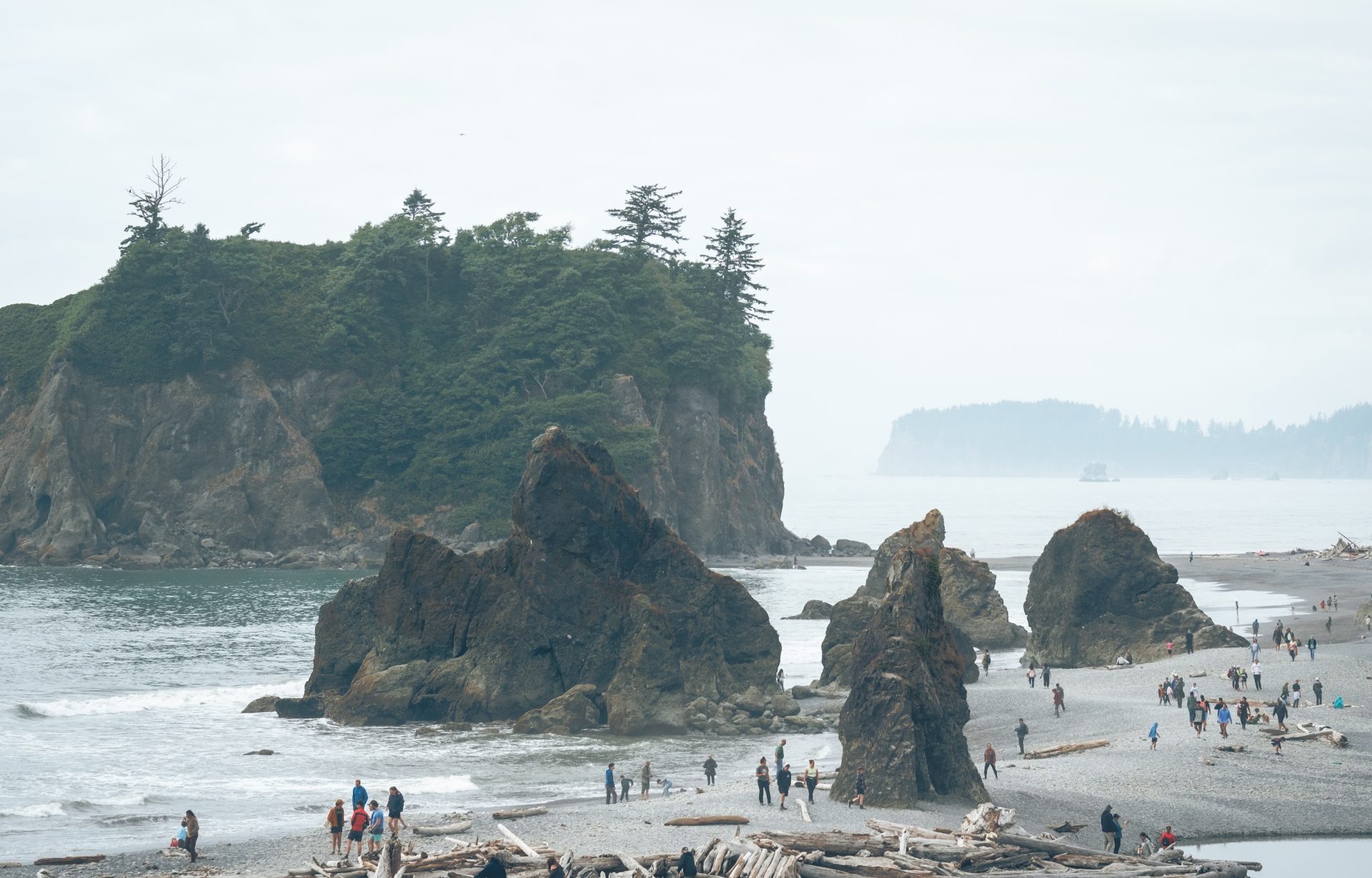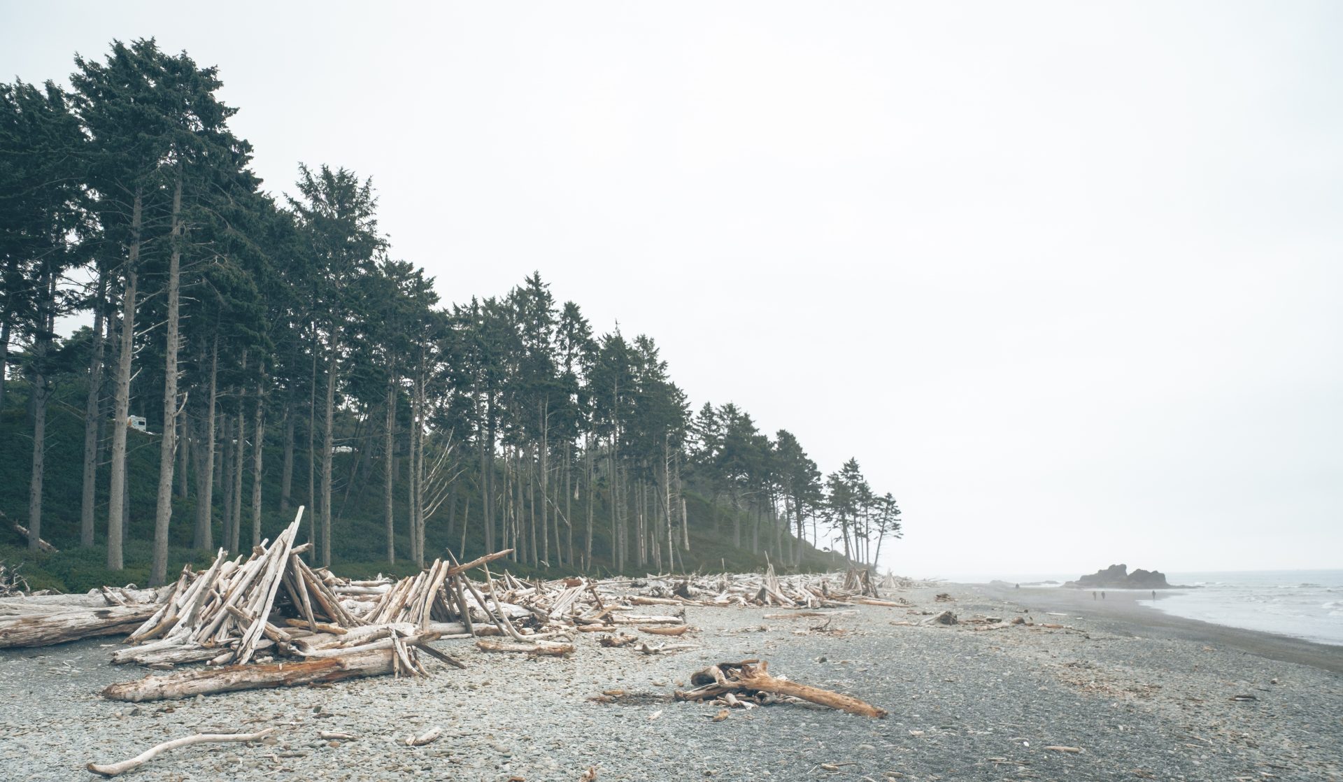 Notre découverte de la péninsule Olympique s’est achevée en beauté à Ruby Beach, l’une des plages les plus emblématiques de la région. Après une courte marche à travers la forêt, nous avons débouché sur une étendue sauvage, balayée par l’océan Pacifique. Le contraste est saisissant : le gris des galets, les troncs d’arbres échoués sur le sable, les vagues puissantes et les rochers se dressant au large créent une atmosphère brute et spectaculaire. James a adoré courir sur la plage, grimper sur les troncs et jouer avec les galets. Très vite, il s’est même fait des copains et ils ont commencé à construire des cabanes avec les morceaux de bois échoués. Voir les enfants s’inventer des aventures au milieu de ce décor grandiose nous a fait sourire : un rappel que la magie du voyage se trouve aussi dans ces moments simples. À quelques minutes de là, nous avons fait un arrêt au Tree of Life, un arbre fascinant suspendu au-dessus du sable, ses racines exposées comme s’il flottait dans les airs. C’est un spectacle étonnant, presque irréel, qui attire voyageurs et photographes. On reste bouche bée devant cette force de la nature, à la fois fragile et résistante, qui continue de pousser malgré tout.