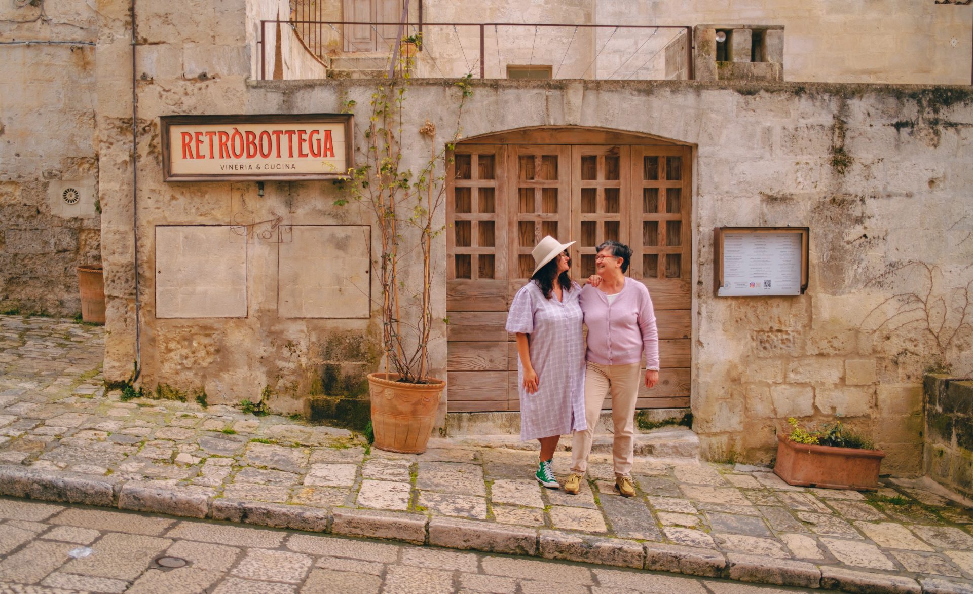 Matera est sans doute l’un des endroits les plus fascinants que nous ayons découverts pendant ce voyage. En arrivant dans la ville, nous avons immédiatement été frappées par son paysage absolument unique. Les maisons semblent littéralement sculptées dans la roche et s’étendent sur les flancs de la vallée dans un enchevêtrement impressionnant d’habitations, d’escaliers et de ruelles. La ville est célèbre pour ses Sassi, des habitations troglodytiques creusées dans la pierre et habitées depuis des millénaires. Pendant longtemps, ces quartiers ont été considérés comme l’un des symboles de la pauvreté en Italie, avant d’être progressivement restaurés et réhabilités. Aujourd’hui, Matera est classée au patrimoine mondial de l’UNESCO et constitue l’une des villes les plus étonnantes du sud de l’Italie.