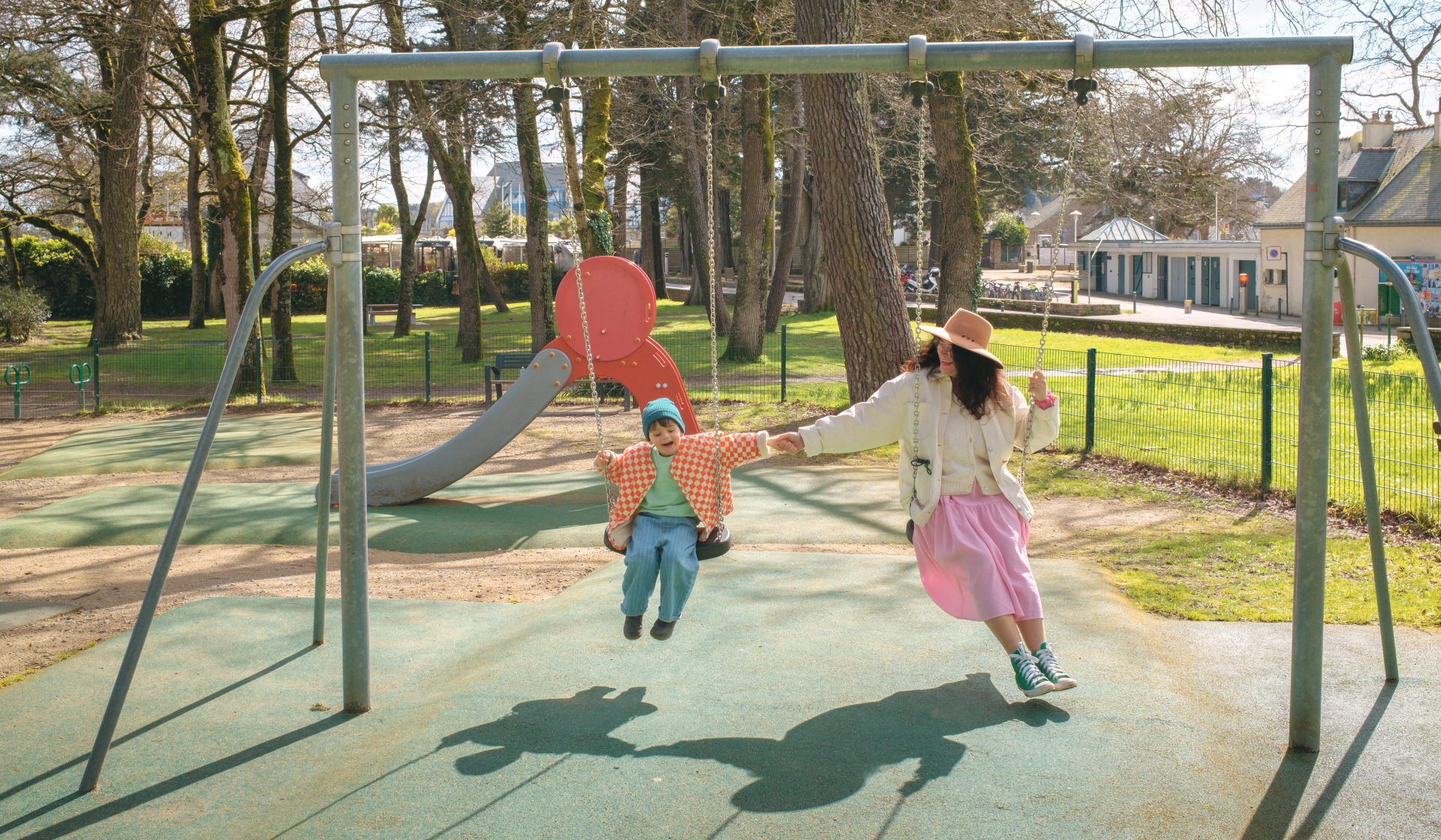Si vous voyagez avec des enfants, vous pouvez partir l’esprit tranquille : Vannes est une ville résolument familiale. Ici, ça vit, ça bouillonne, et les enfants y ont toute leur place. Ce qui nous a frappés dès notre arrivée, c’est la densité d’espaces pensés pour les petits. Des aires de jeux, il y en a partout, et pas de ces équipements un peu tristes qu’on oublie vite — non, des aires bien conçues, dans des cadres agréables. Notre préférée ? Celle située directement sur le port. James y a passé un temps fou, entre les toboggans et les structures d’escalade, avec les bateaux en toile de fond. Il n’y a pas beaucoup de villes où l’on peut jouer en regardant la mer, et c’est absolument charmant.