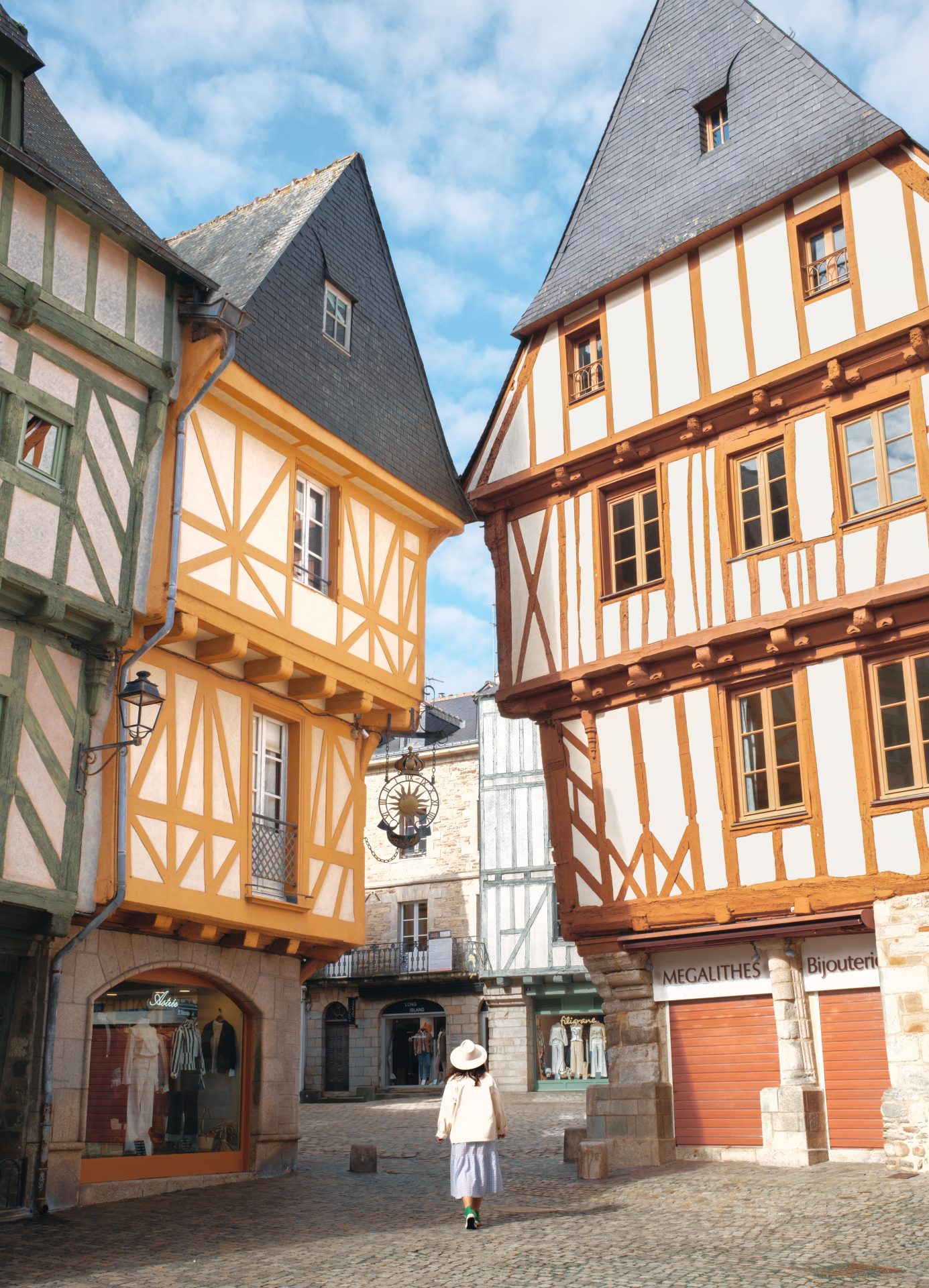 Si Vannes est l’une des plus belles villes de Bretagne, c’est en grande partie grâce à son centre historique, d’une cohérence et d’un charme absolument exceptionnels. Le quartier Saint-Patern, en particulier, est un véritable voyage dans le temps. Les maisons à colombages se succèdent, les rues piétonnes s’entremêlent, les ruelles pavées semblent avoir traversé les siècles sans rien perdre de leur âme. On a l’impression d’être dans un décor de film — sauf que c’est bien réel, et que les gens y vivent, y font leurs courses, y boivent leur café.