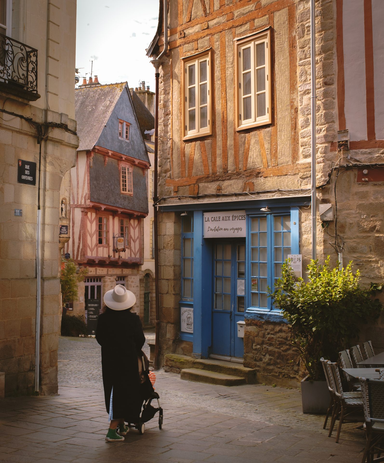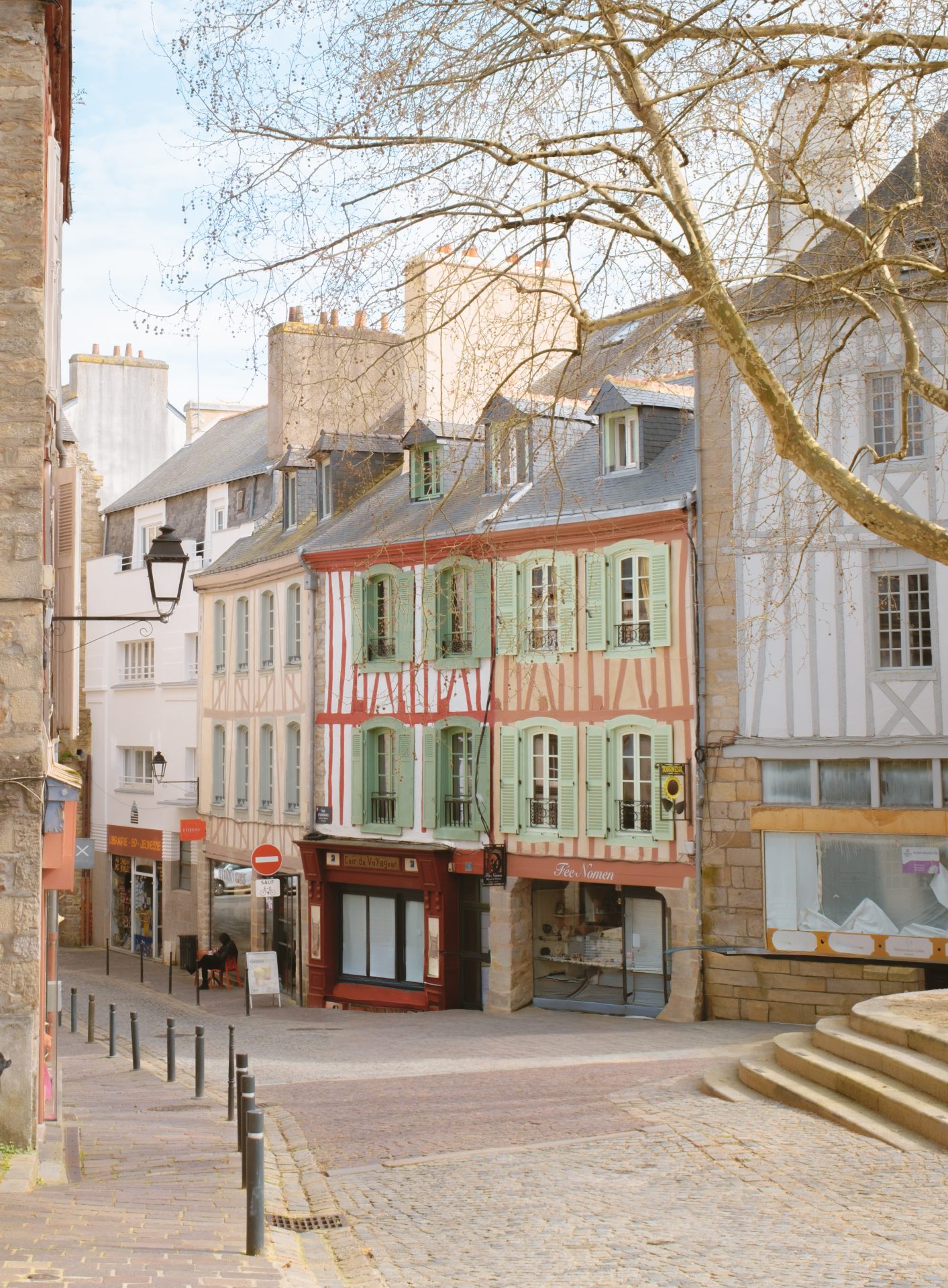 Parmi les rues qui méritent absolument d’être arpentées, la rue Saint-Salomon et la place Henri IV figurent en tête de liste : elles concentrent à elles seules quelques-unes des plus belles façades à pans de bois de la ville, certaines datant du XVe siècle. La rue des Halles, avec ses arcades, donne une idée de ce que pouvaient être les marchés médiévaux. Et partout, ces détails qui font la différence : une porte sculptée, une fenêtre à meneaux, une enseigne en vieux breton. Le charme opère immédiatement, et ne faiblit pas. Avec James, la déambulation dans le centre historique s’est transformée en exploration : chaque ruelle devenait un nouveau mystère, chaque maison une maison de conte. Ces moments-là, on les garde.