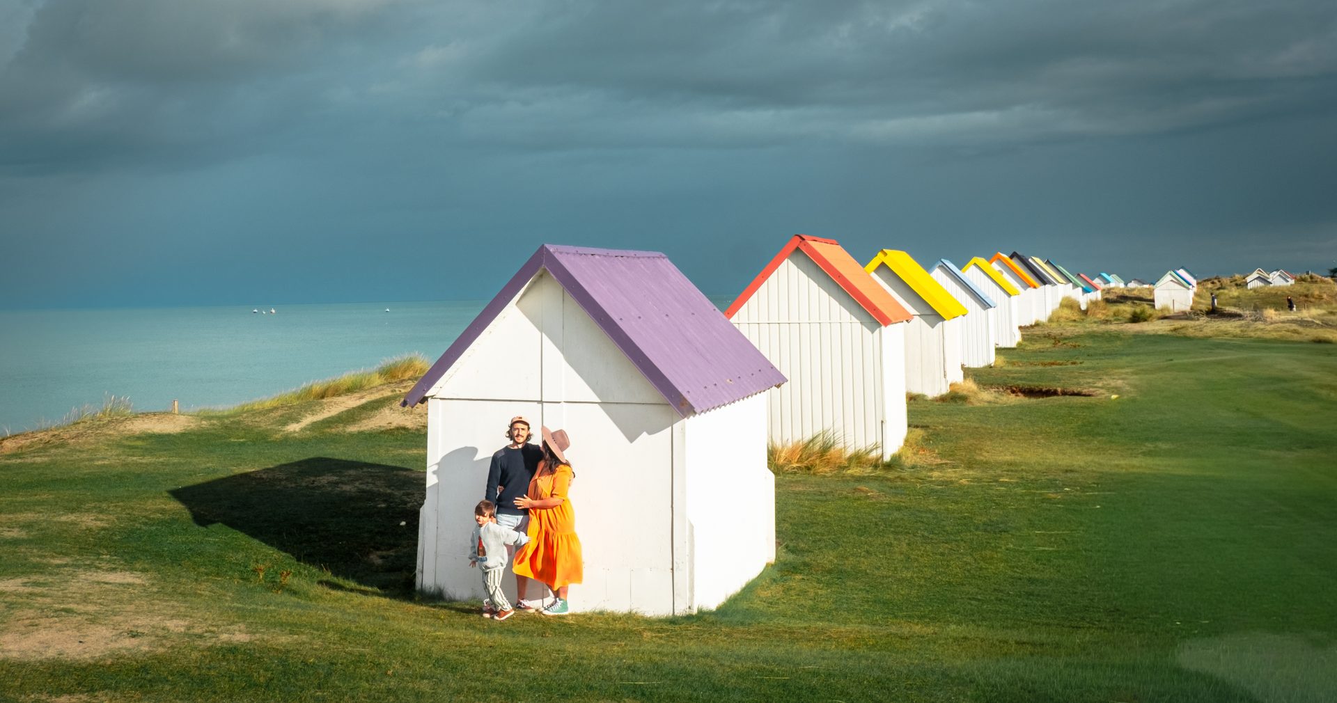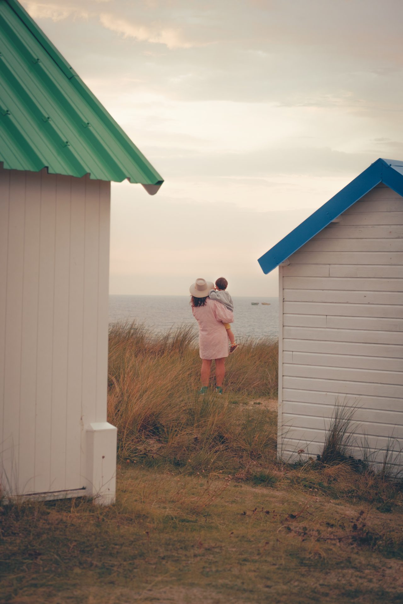 Pour nous, cette région n’est pas une simple destination. C’est un endroit où l’on aime revenir, encore et encore. À Gouville-sur-Mer, nous avons d’abord découvert les célèbres cabines colorées à deux. Puis j’y ai emmené ma maman, peu après la perte de mon père, pour retrouver un peu de douceur dans ce paysage aux teintes joyeuses. Plus tard, enceinte de James, c’est ici que j’ai fait mon dernier voyage avant de devenir maman. Et aujourd’hui, nous y revenons avec lui, âgé de 3 ans, émerveillé par les mêmes couleurs qui nous réconfortent depuis toutes ces années. Un cycle de vie qui s’ancre dans ces dunes et ces cabines, comme un rituel.