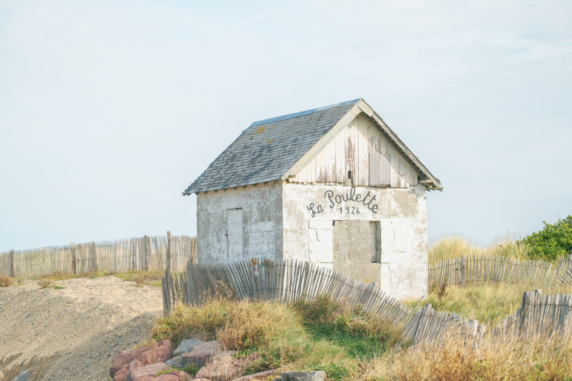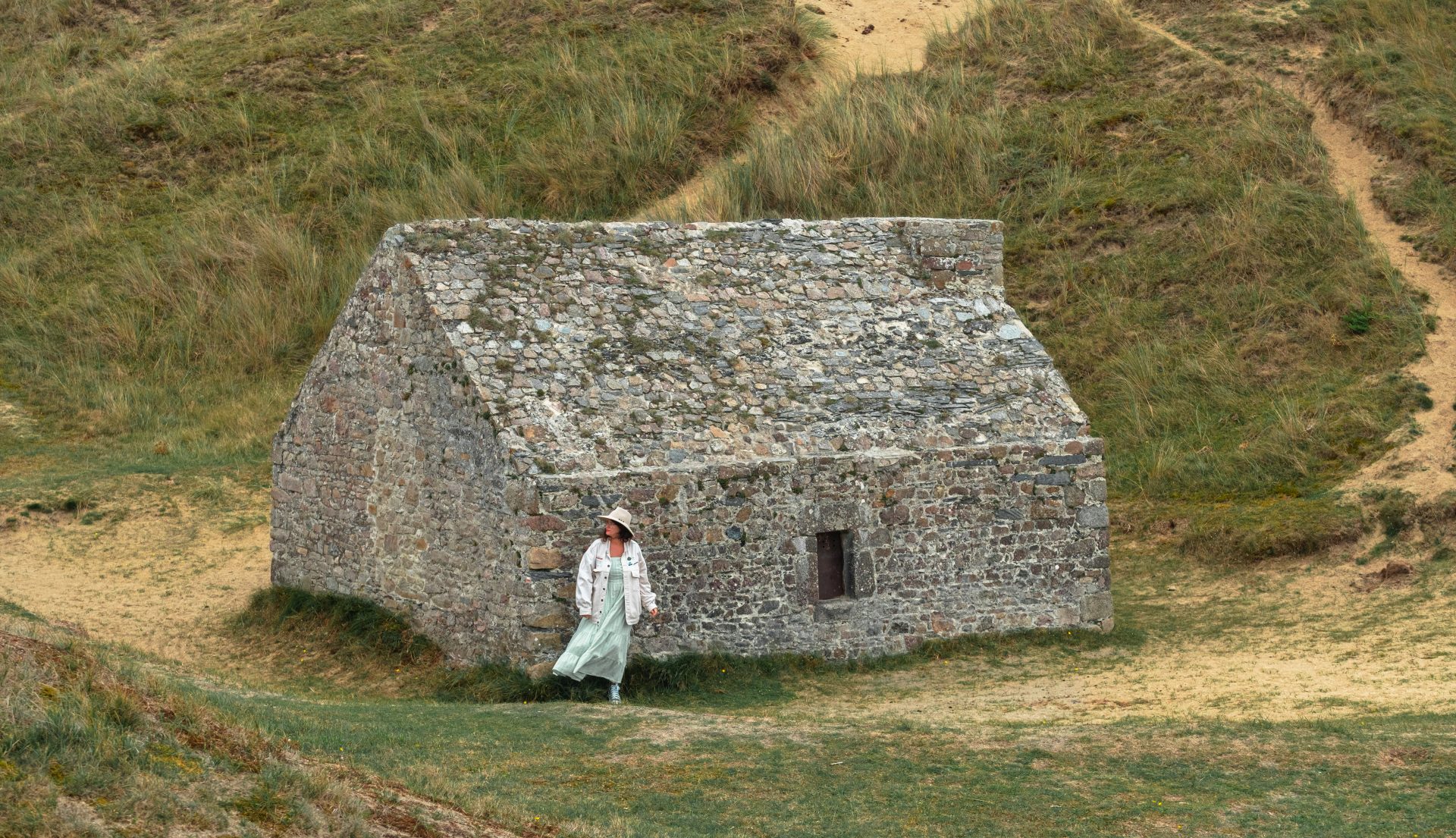 On compte aujourd’hui plus d’une centaine de cabines à Gouville, toutes différentes, peintes de couleurs vives qui tranchent avec le sable et l’océan. Leur particularité ? Elles appartiennent aux familles du coin et se transmettent de génération en génération. Certaines sont entretenues depuis des décennies, presque comme des héritages précieux. C’est ce qui explique aussi leur charme si particulier : elles racontent une histoire, celle des familles qui viennent y passer leurs étés depuis toujours. Pour ceux qui aiment sortir un peu des sentiers battus, il ne faut pas manquer l’ancien corps de garde, niché au cœur de la dune en direction de Blainville-sur-Mer. Un petit bout de patrimoine discret, posé dans un écrin naturel.